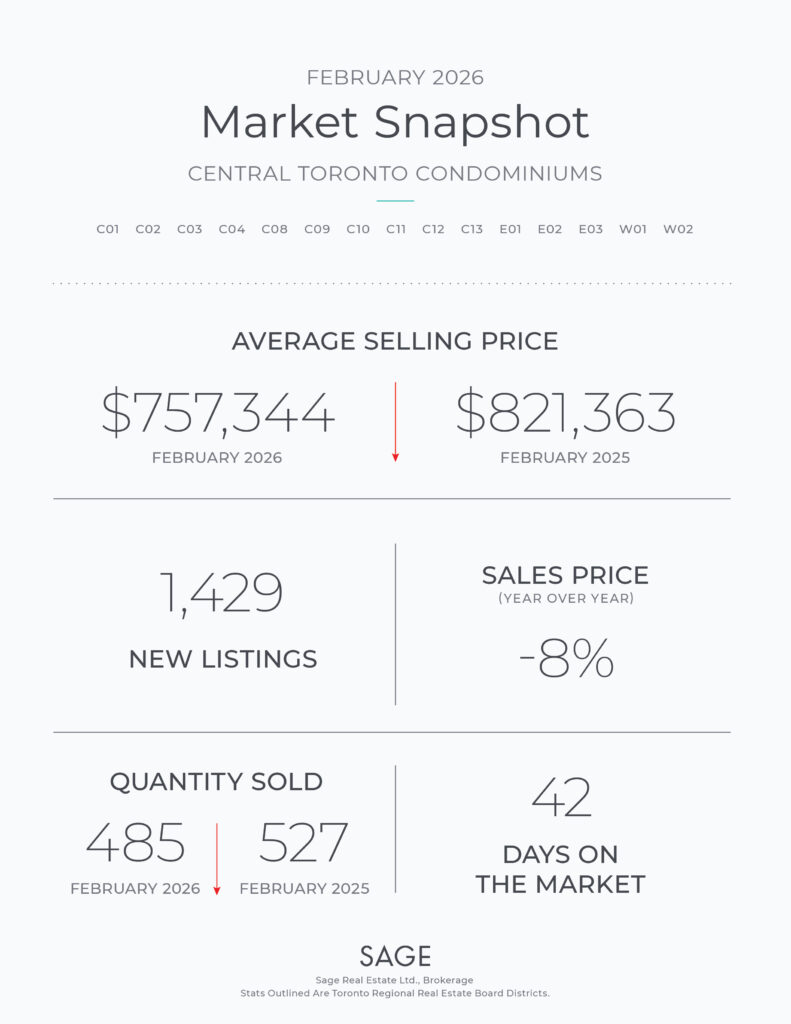 With respect to condo sales, Central Toronto REALTORS® reported 485 condo sales in February 2026; and on average, these condos sold for $757,344 last month.