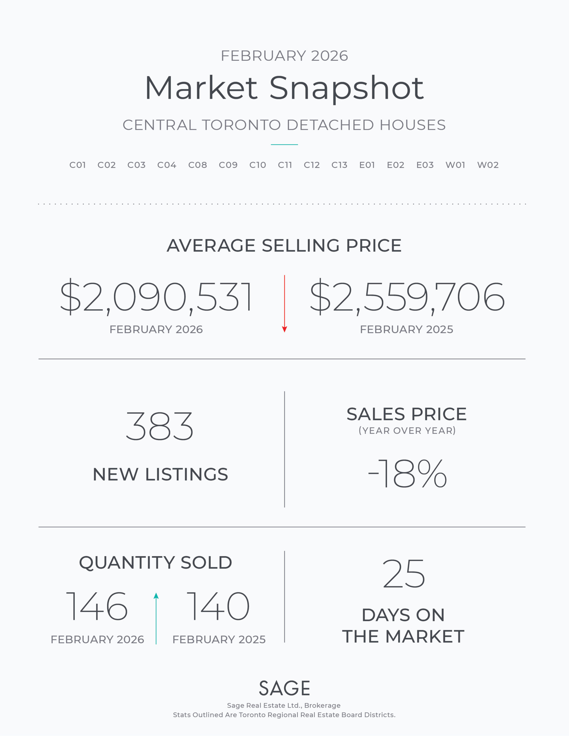 Central Toronto REALTORS® reported 146 detached home sales through the Toronto MLS® in February 2026; and on average, these detached homes sold for $2,090,531.