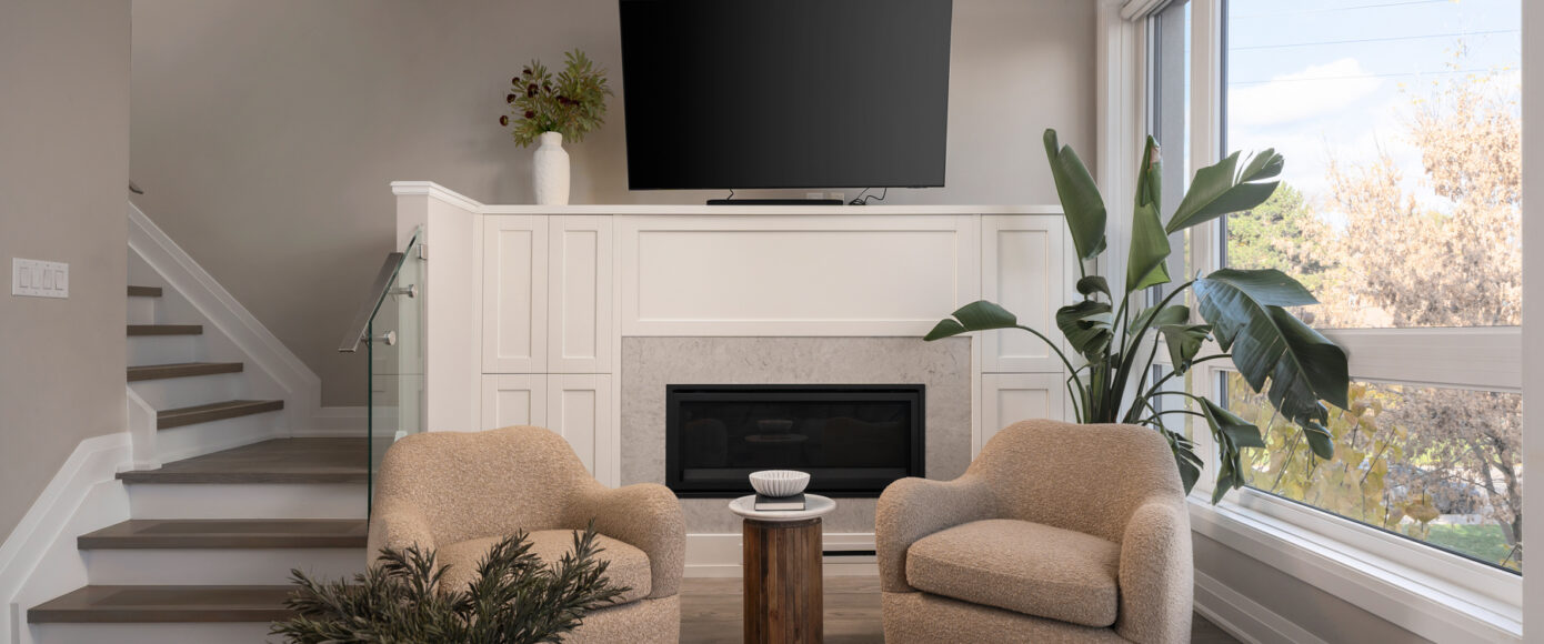 The main level features an open-concept layout with a chef’s kitchen showcasing quartz counters, custom millwork, under-cabinet lighting, and designer fixtures. The spacious living area is bright and inviting, complete with a fireplace, while the dining room offers automatic blinds and a walkout to a private deck with a gas hookup for a BBQ