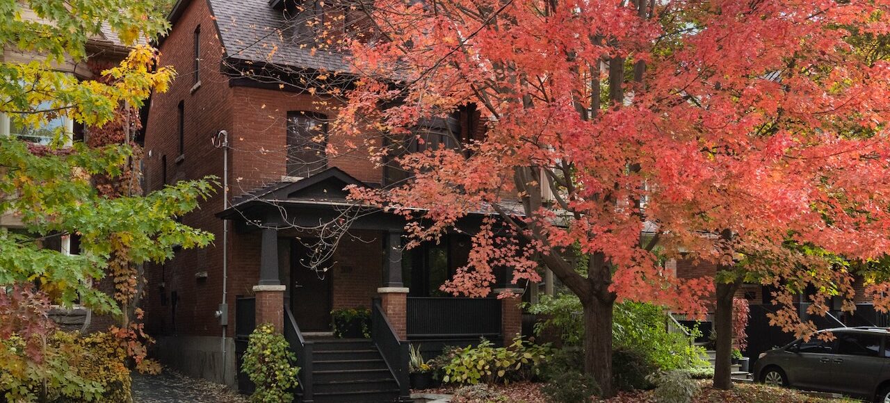 - A distinctive tree in the front yard, which we consider the most beautiful on the street, casts dappled light into the primary bedroom during the mornings. In autumn, its red leaves imbue the interior, as seen through the blinds, with a pinkish hue. An ancient oak tree majestically overhangs the backyard.