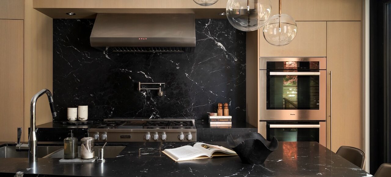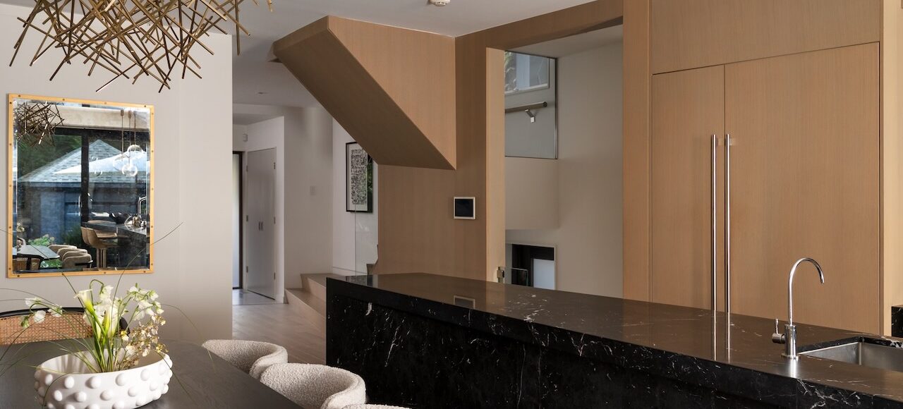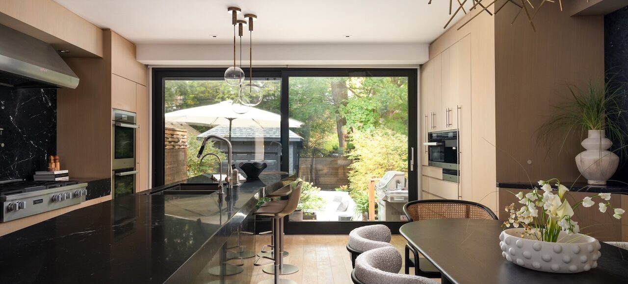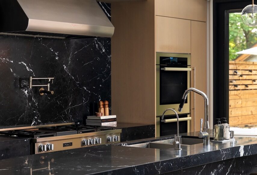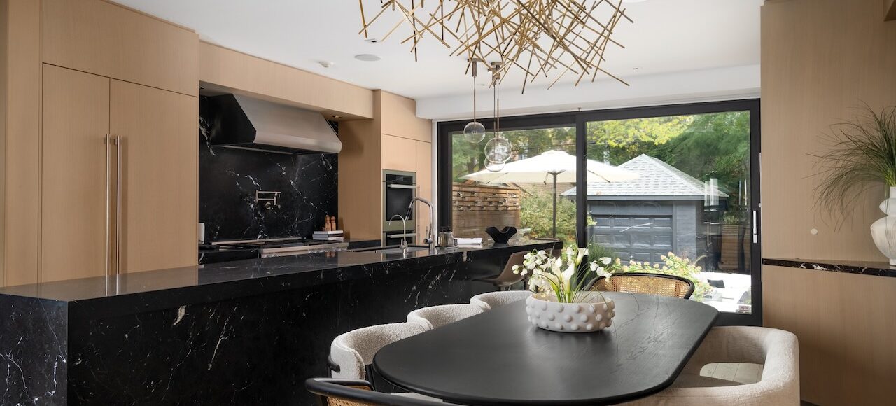 A Control4 smart home system commands lighting, blinds, and sound across every level, while Marvin windows and Bauhaus quarter-sawn sapele doors pair craftsmanship with quiet luxury. The kitchen is pure sculpture: Nero Marquina marble, integrated high-end appliances, and Bocci outlets as functional art. Water quality is next-level with a Reverse Osmosis and remineralization system, ensuring not only crisp, purified drinking water but also longer life for the built-in water lines feeding the ice maker, coffee system, and appliances – the kind of detail that separates thoughtful design from the rest.