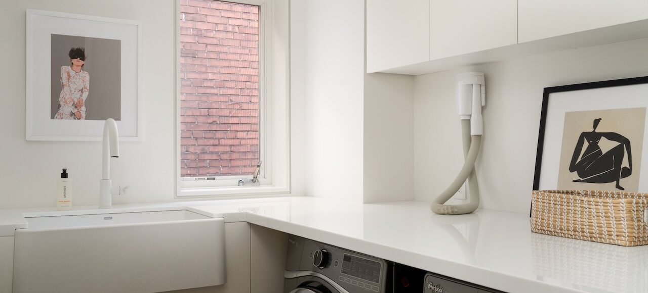 - The central vacuum system, with its handheld unit in the laundry area, is highly valued for convenient lint screen cleaning.