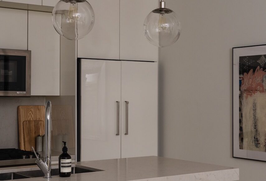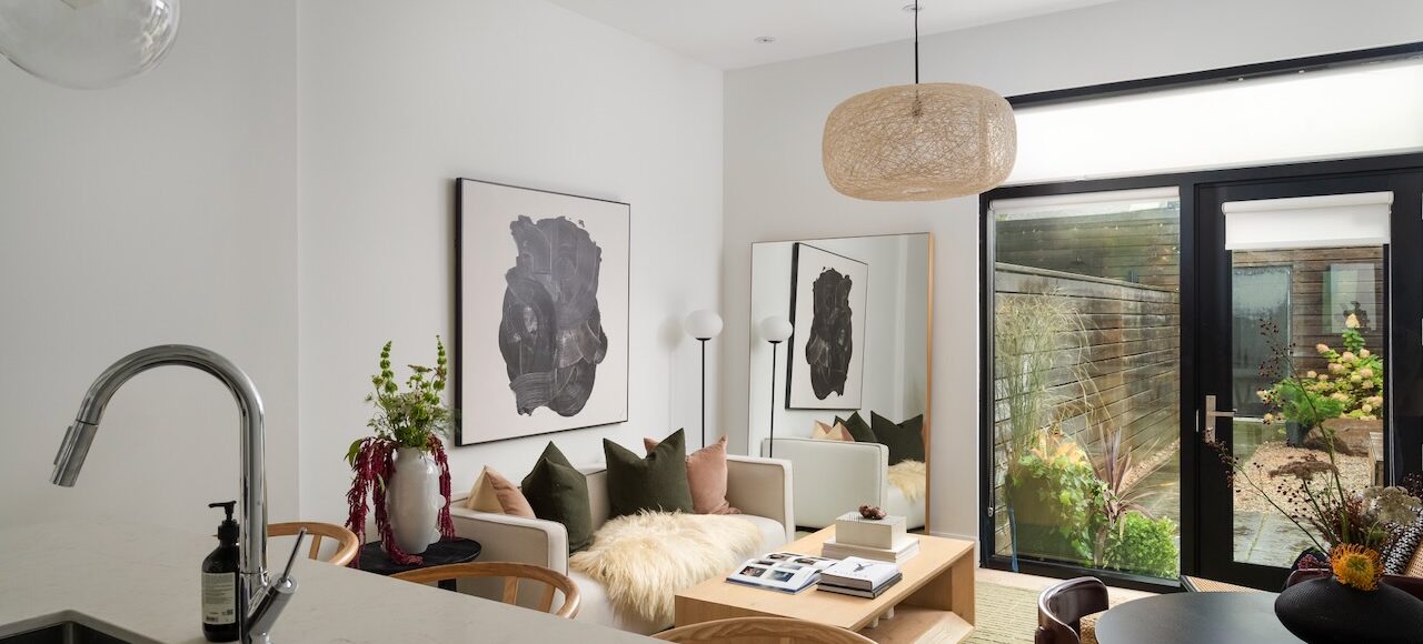 - Designer light fixtures installed throughout.