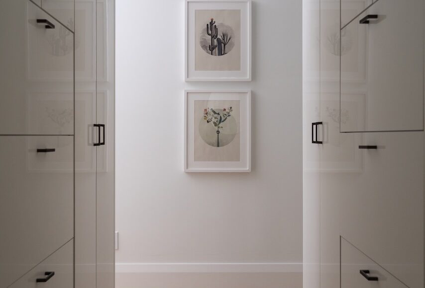 - Walk in/through closet with custom organization in the primary bedroom.
