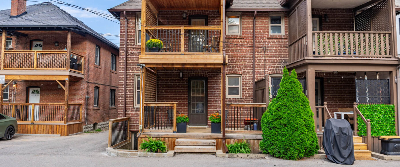 Turnkey income opportunity! Two beautiful two bedroom rental units plus an additional basement 1-bedroom, 2-bath suite with strong rental income. Each upper unit offers 2 bedrooms, 1.5 baths, with stunning kitchens and large floor plans and upgraded finishes throughout. Lovely balconies and outdoor space. Professionally landscaped with parking. All units currently tenanted with strong rental income. A/C wall units only in second floor.