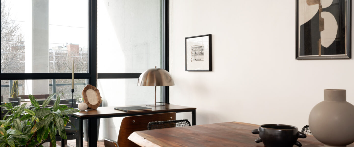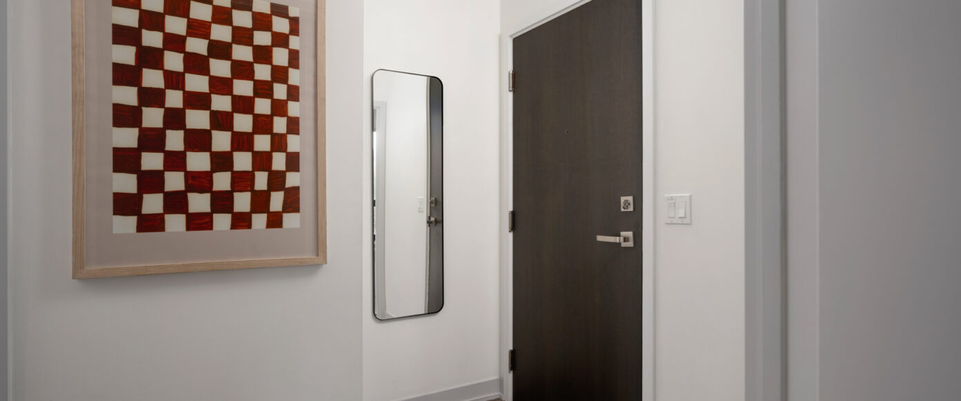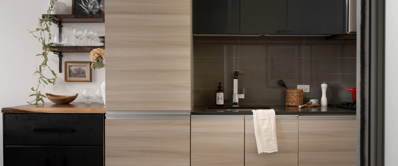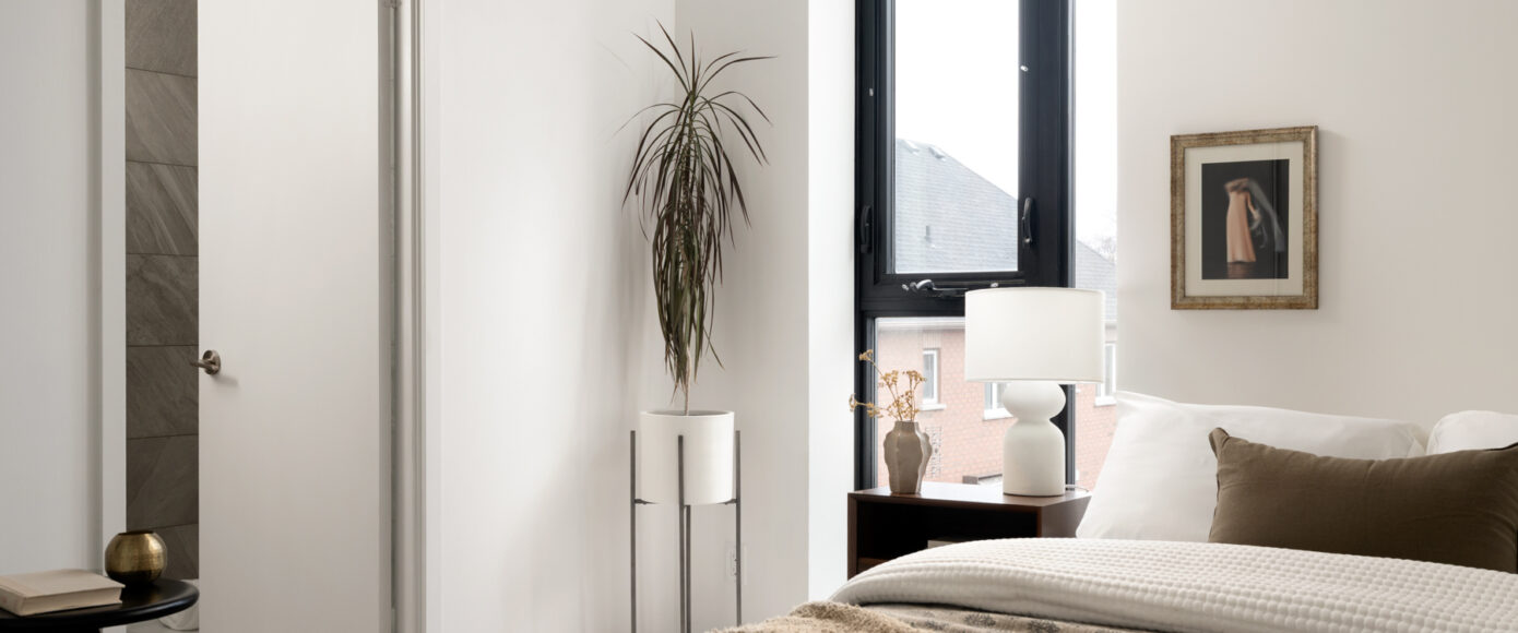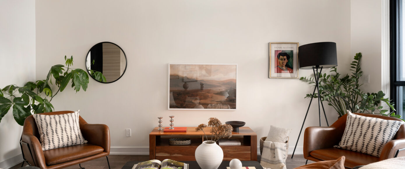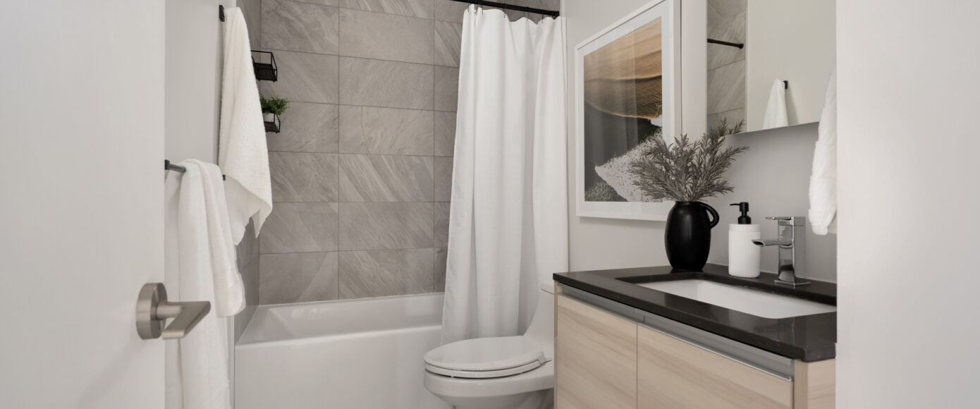 Stylish without being pretentious, Leslieville feels like the sound of a bright saxophone under a lamppost. In the boutique Taylor Lofts, this 2 bedroom 2 bathroom split-layout is wide and well proportioned. Say goodbye to the narrow floor plan, Suite #403 has 9-ft high exposed concrete ceilings and large windows across the back offering plenty of natural light. A cold craft beer, a good book, and your feet up out on that roomy balcony, equipped with a gas hookup for the self-proclaimed grillmaster, your friends will have serious ‘end of day’ envy. That’s pretty rare, but it doesn’t stop there, as it also comes with a full-sized gas range stove and ensuite bathroom in the primary bedroom, notably large enough for a Queen! The open concept living / dining room is a breathable space you’ll spend most of your time.