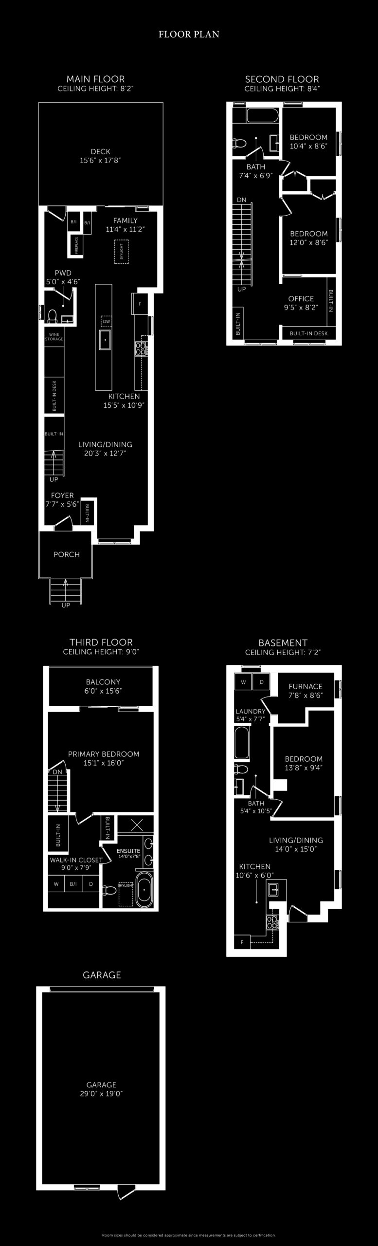 The stylish family compound of your dreams and the upgrade you’ve been waiting for. I hope you are locked in, you cool, downtown family – it’s about to get exciting. Complete gut renovation in 2014 brought this beauty to its current, perfect, configuration and generational nirvana. Main floor feels sunny, inviting, warm – equally amazing for kitchen parties, homework marathons and movie nights. Practical powder room, closet built-ins (note custom built-ins throughout the entire house) and rear family room with gas fireplace spilling into a lush garden and rare, palatial two-car garage. Second level sleeping quarters with family bathroom and three bedrooms – one of which is currently styled as an office and easily returned to its bedroom state, more built-ins/storage and views over Osler Park across the street (with new play structures, summer splash pad zone hellloooo). Third floor is a true primary retreat and sanctuary with a walk-in closet, skylit ensuite and private balcony – exactly where you want to land at the end of the day. Downstairs, a self-contained one bedroom suite (7’2” ceilings) functions beautifully as a mortgage helper/life enhancer or easily reconnects to the main house; the house (including the basement) will be delivered vacant giving you options from day one.