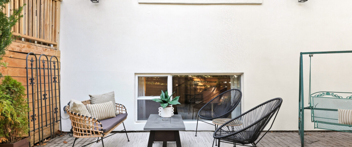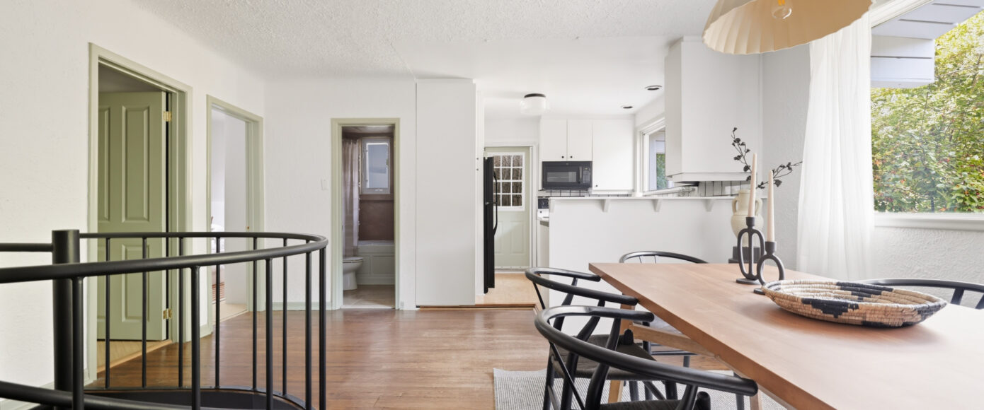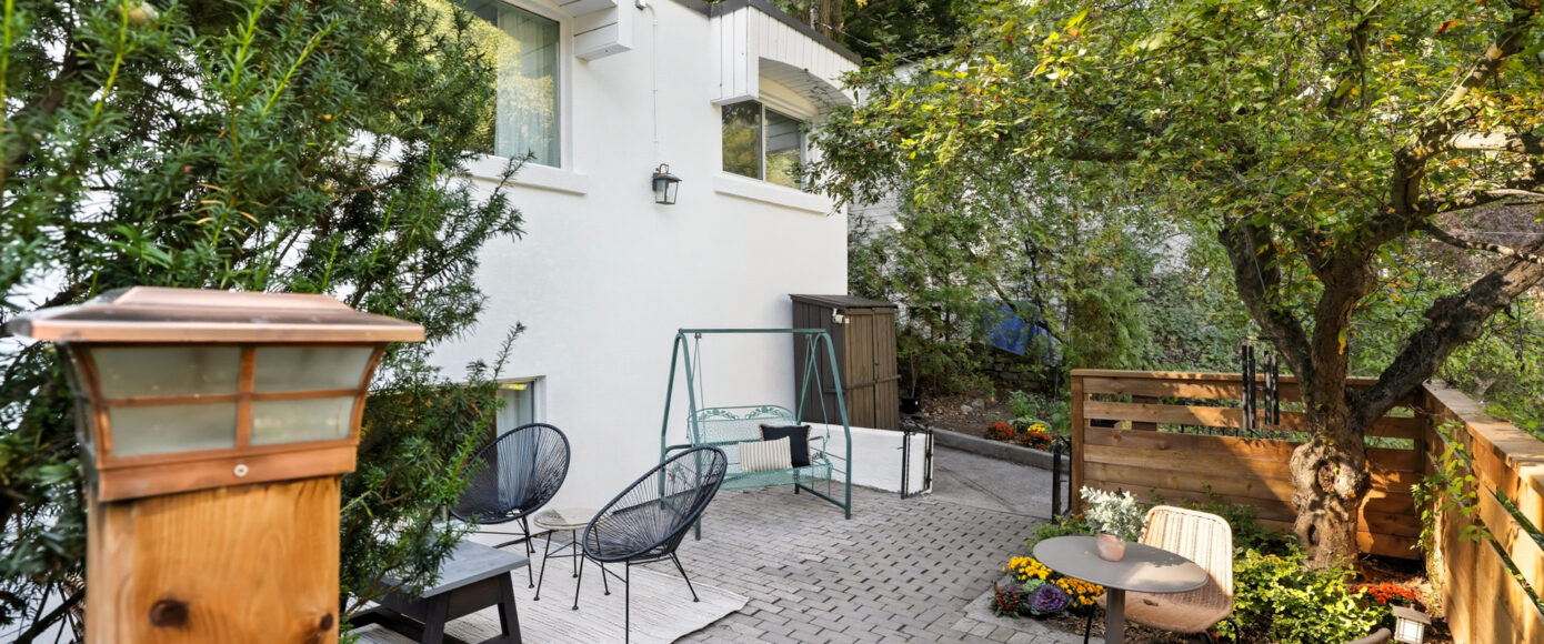 - Side door from the kitchen to a private porch for morning coffee or quiet breaks