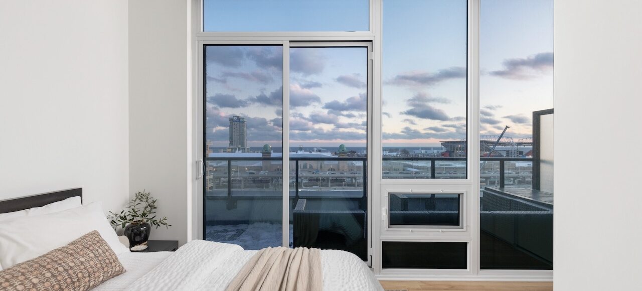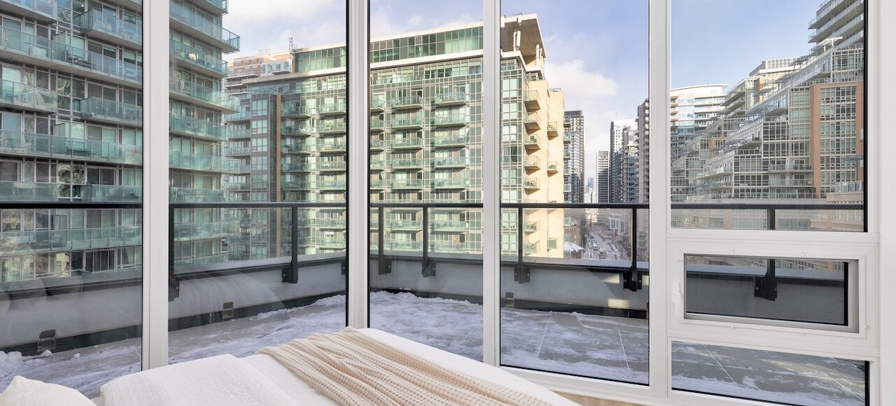 3rd Bedroom: Corner bedroom with eastern city views, wall of windows.