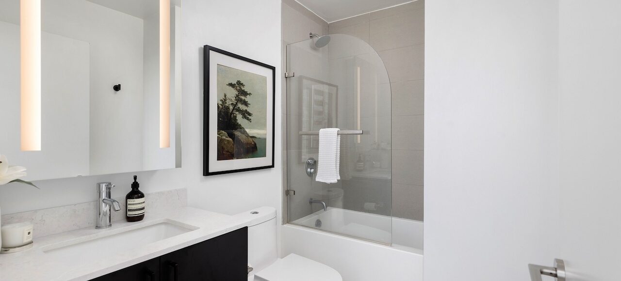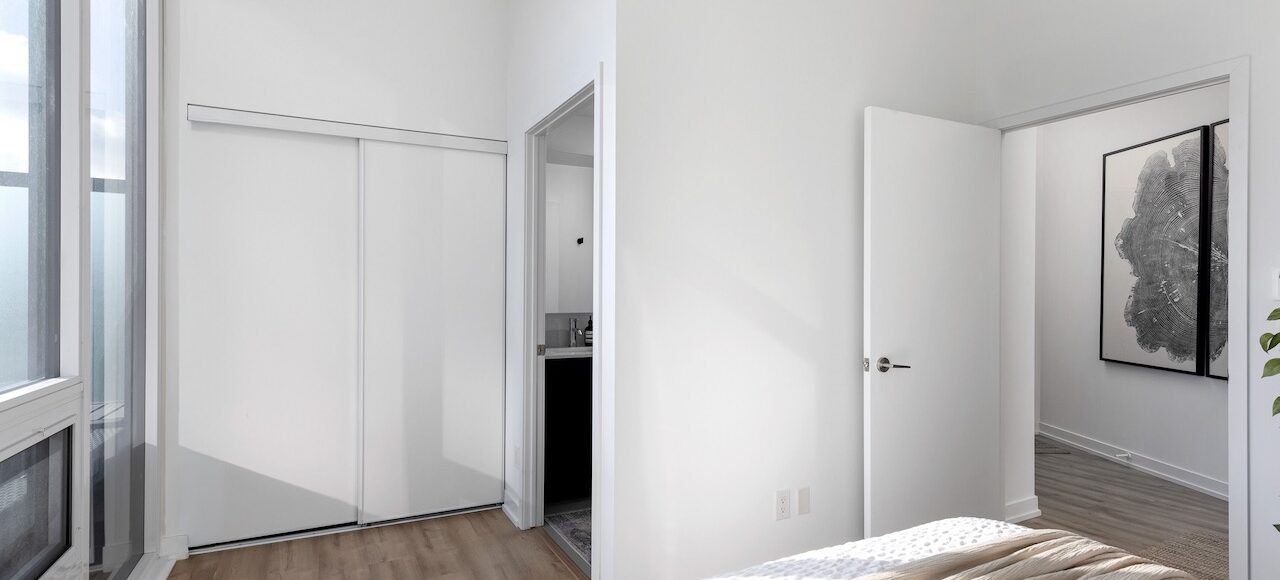 Built in 2021, this modern suite showcases thoughtful design with 9.5-foot ceilings, floor-to-ceiling windows without bulkheads, engineered hardwood floors, and sound-attenuated windows. The intelligent corner layout maximizes privacy with most walls unshared with neighbours.
