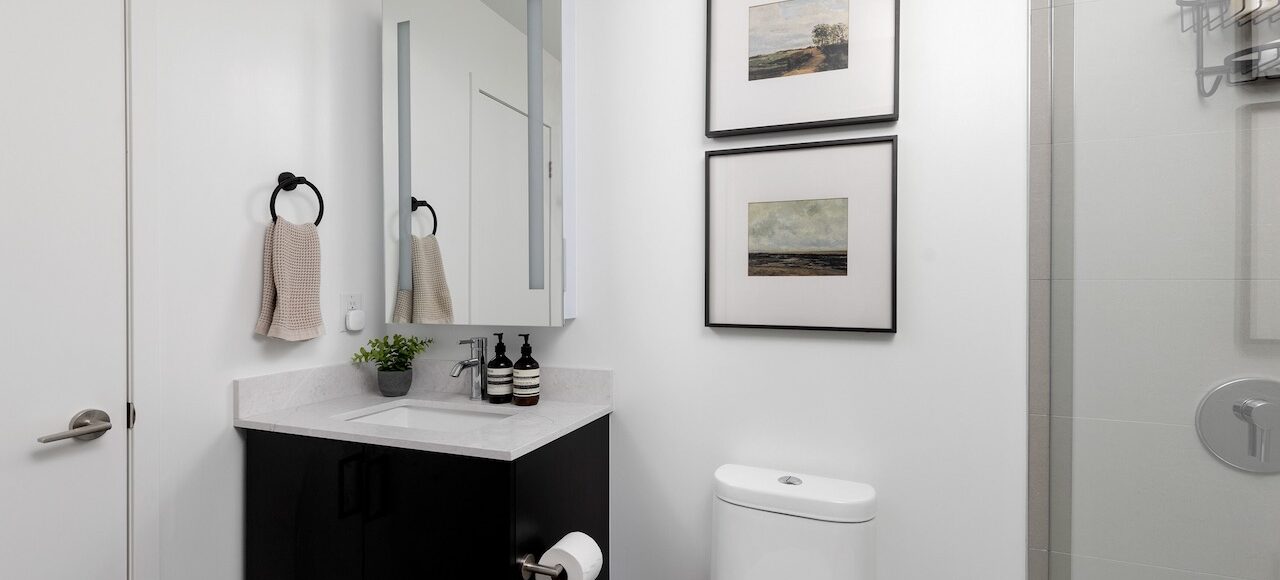 2nd Bathroom: 3-piece with walk-in shower, frameless glass, quartz counters, full-size linen closet.