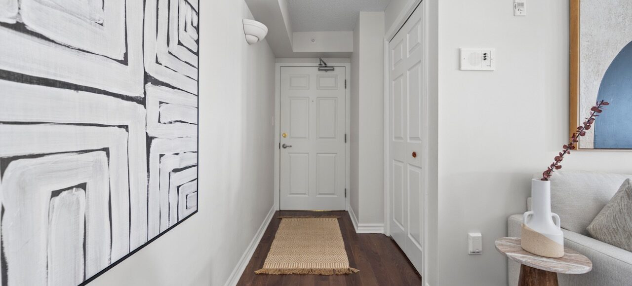 Step inside to a defined foyer that creates a natural separation from the main living space. A good-sized hall closet keeps coats, shoes, and everyday essentials neatly tucked away, helping the home feel organized from the moment you enter.