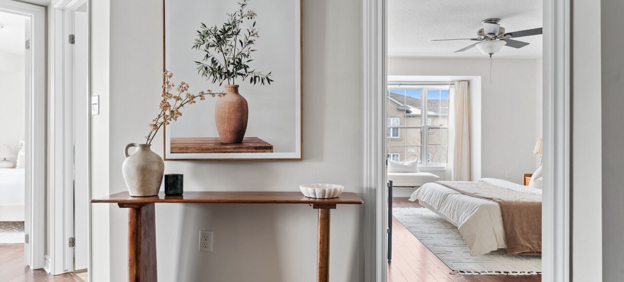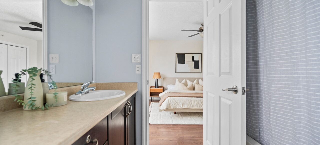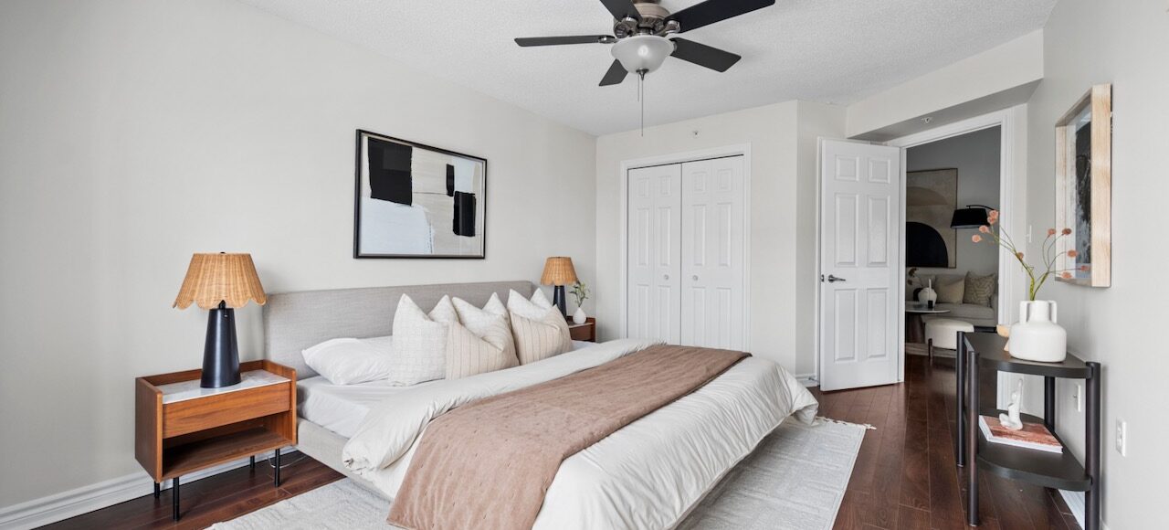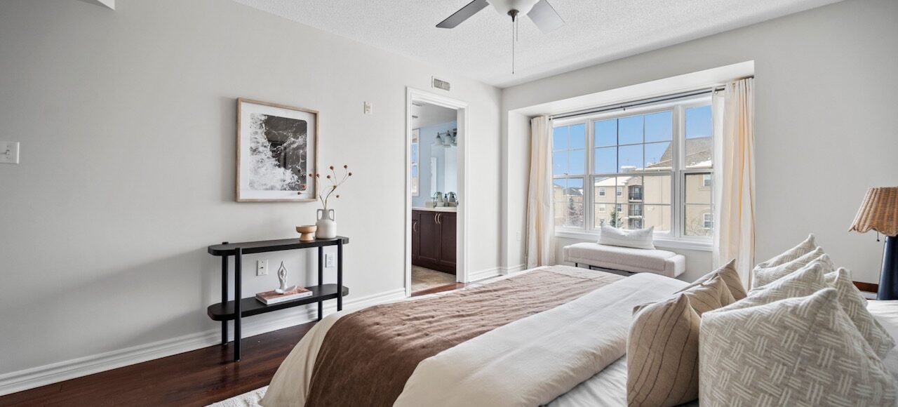 A peaceful west-facing retreat that catches the warm afternoon and evening light. Room enough for a king-sized bed and accompanying furniture, and with plenty of closet space to keep things tidy. The 4-piece ensuite has a tub/shower combination and a window for natural light.