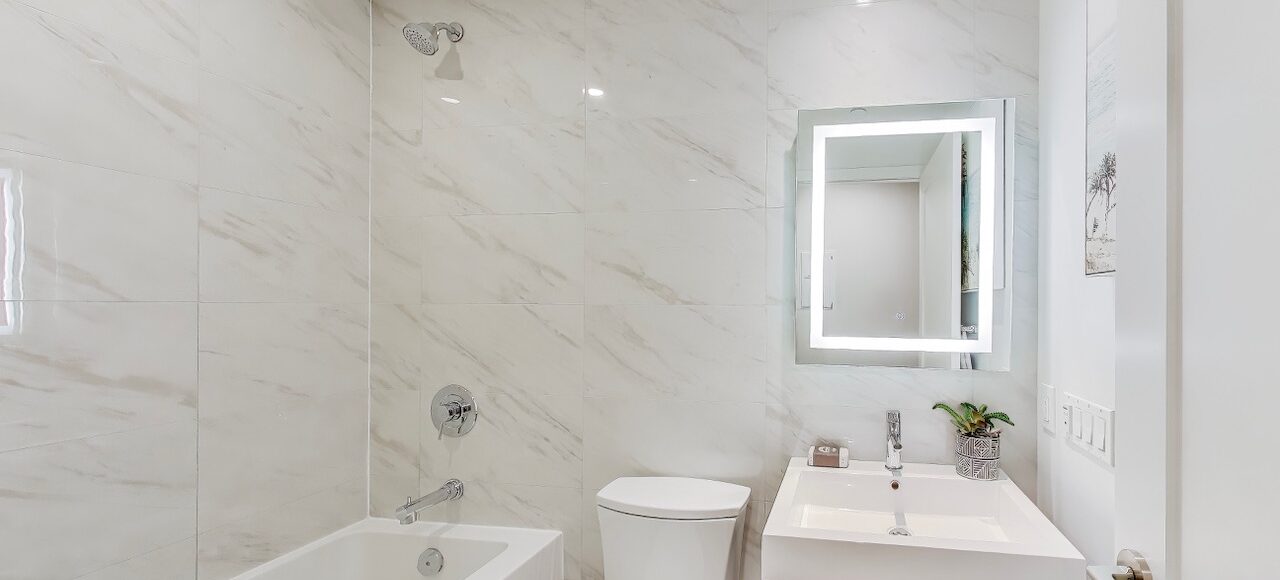 - In Main bath, supply & install Volkas White Matte 12×24 flooring through out, in lieu of std.