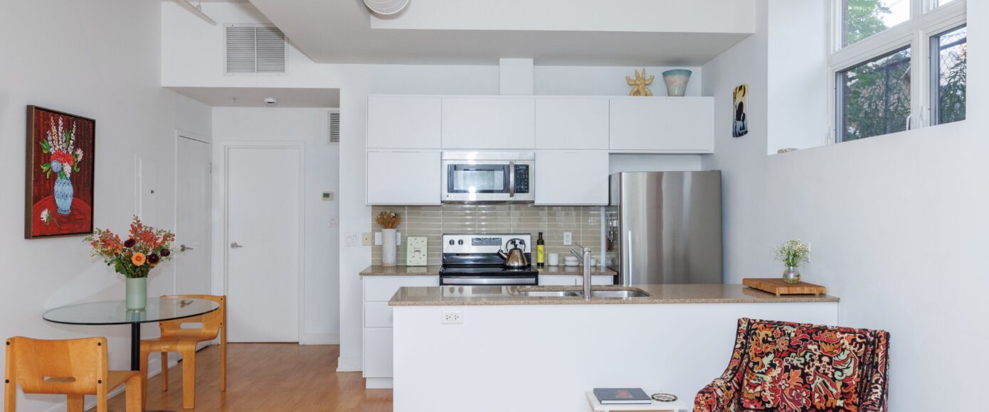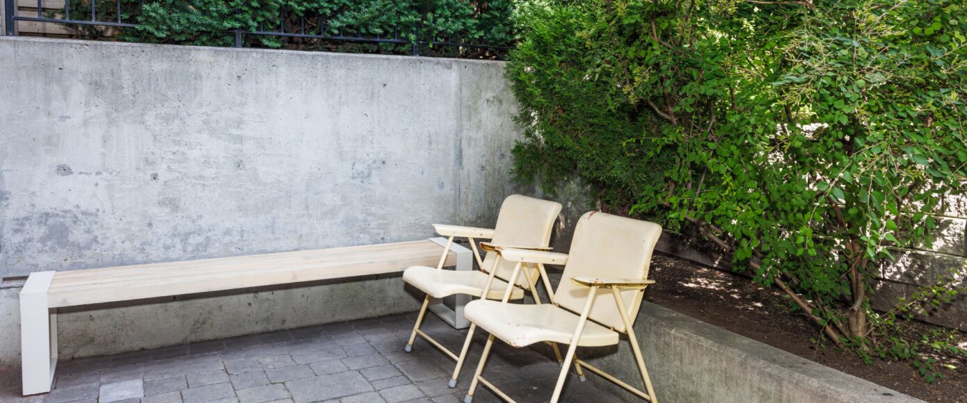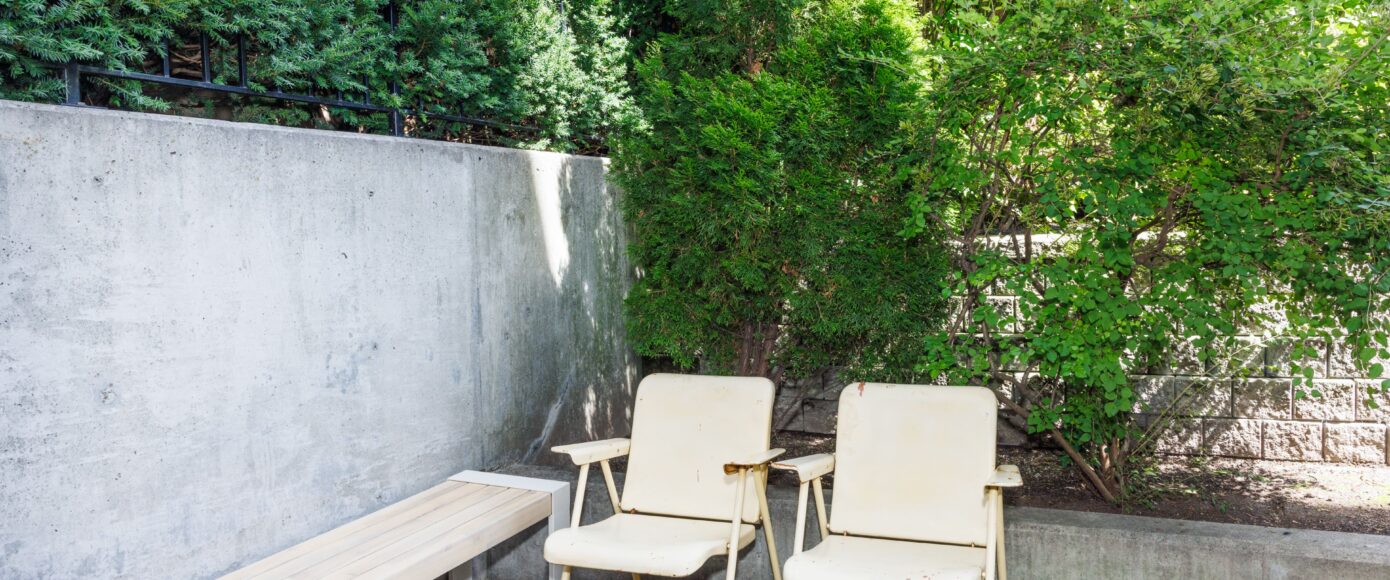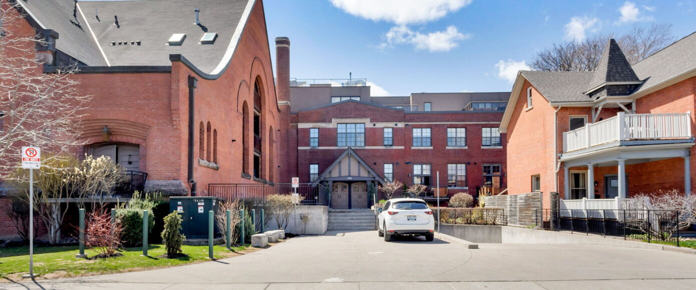 Enjoy the ease of ground-floor living with your own private entrance—no elevators or stairs required. A peaceful stone path lined with seasonal greenery leads to your front door, where lilac trees greet you and your private terrace awaits. It’s a serene oasis that feels worlds away from the city, yet right in the heart of the Junction.