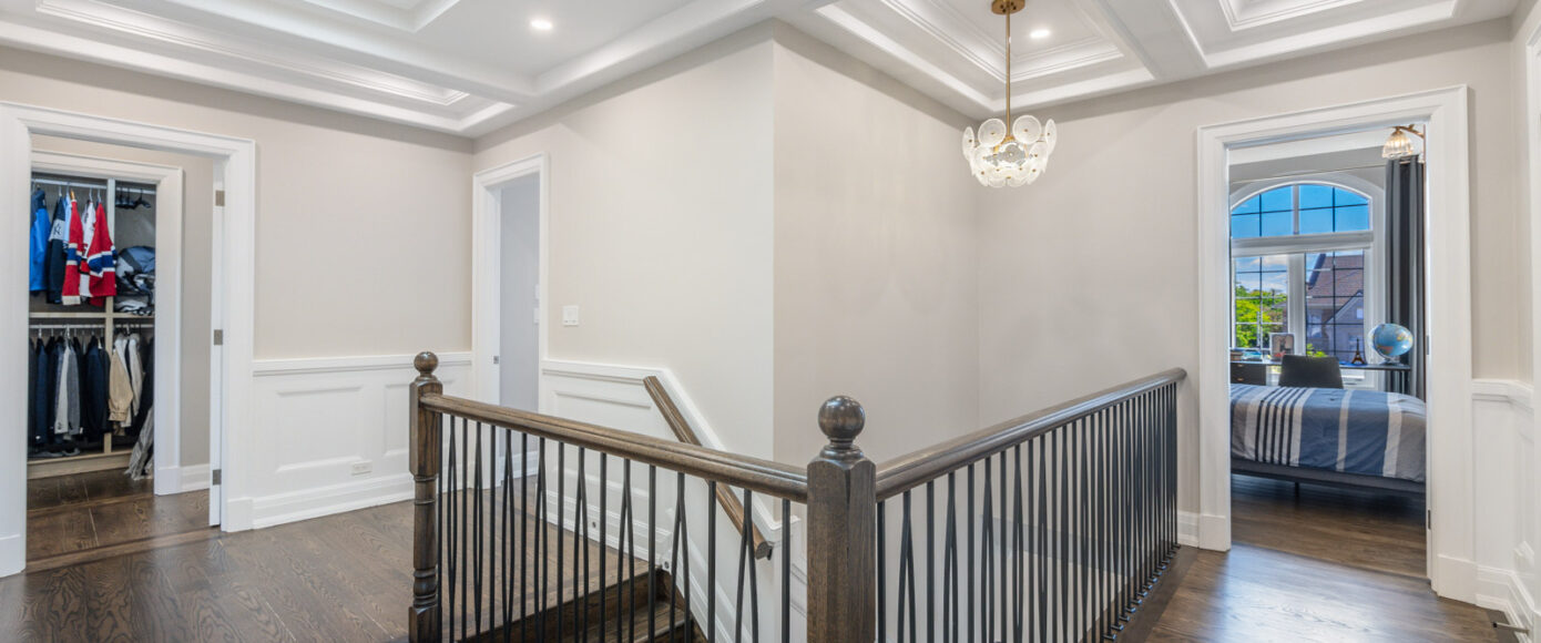 Discover a rare and remarkable opportunity to own an exquisite custom-built home, perfectly situated in a quiet cul-de-sac within the highly sought-after community of North York. This elegant four-bedroom residence boasts an array of luxurious features and spans over 4,500 square feet of living space. Upon arrival, you are greeted by a heated driveway, a unique and convenient feature that ensures safety and ease during the winter months. The home’s interior is a testament to modern elegance and functionality, featuring Caesarstone and marble countertops that provide both beauty and durability. The residence is adorned with beautiful oak hardwood floors, which add warmth and sophistication to every room. Architectural details such as cornice plaster moldings and panel walls enhance the refined aesthetic, while intricately designed ceilings and an array of stunning light fixtures, including numerous pot lights, create a luxurious ambiance throughout the home.