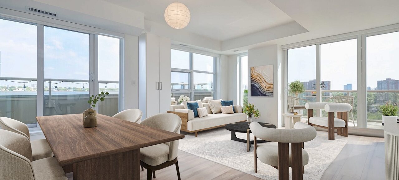 Savvy buyers, don’t miss this top layout in one of Toronto’s best-kept secret buildings. This 940 sq ft unit defines “freehold alternative” in all the best ways! We always love a corner unit, and this one greets you at the end of the hall next to a convenient grocery nook. The entry (with oversized storage and ensuite laundry) opens to an open den (perfectly tucked away for work from home meetings) and additional storage. The open-concept main area includes two separate balconies with upgraded flooring and SE views all the way to the lake. The floor-to-ceiling windows bathe the unit in light, ideal for plant lovers. We love the kitchen with upgraded backsplash and counters, a hidden dishwasher, and a FULL-SIZED FRIDGE!