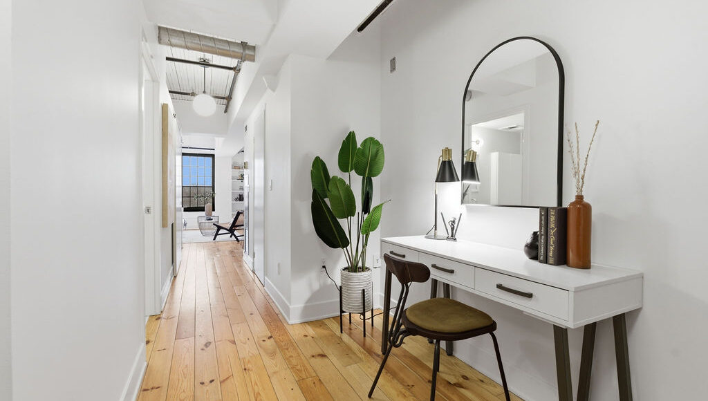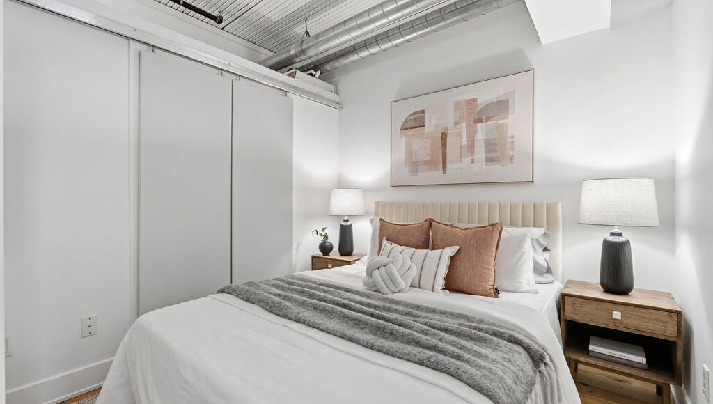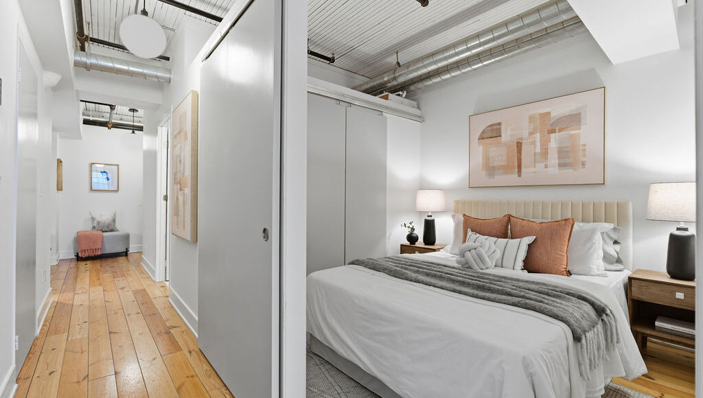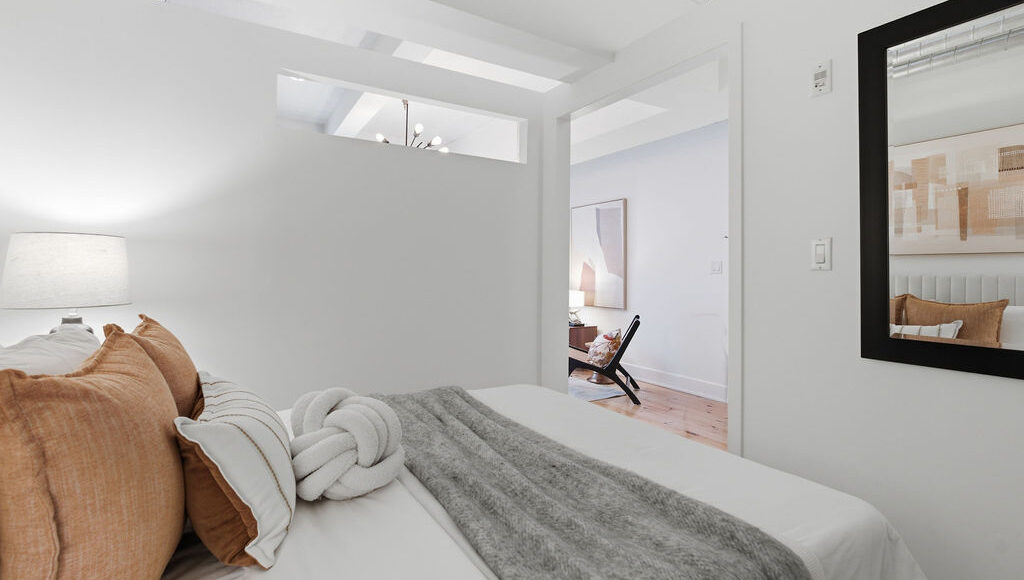 The sleek galley kitchen features stainless steel appliances and stone countertops, perfectly positioned for both everyday living and effortless entertaining. Smart design details elevate the space even further, including custom sliding and pocket doors, built-in shelving, and a good sized locker located on the same floor. The widened hallway creates a flexible nook ideal for a home office, reading corner, or additional storage. The view? Absolutely captivating. Expansive windows frame breathtaking sunrise views stretching across the downtown skyline — a daily reminder of why authentic hard lofts like this remain so coveted. A true urban sanctuary in one of Toronto’s most iconic addresses. Prime Beaconsfield location, steps to Queen St W., Dundas W., the Ossington strip, shops, restaurants, and bars.