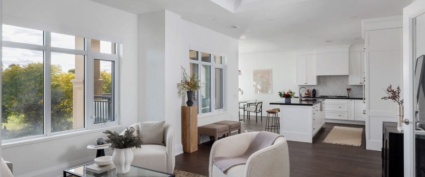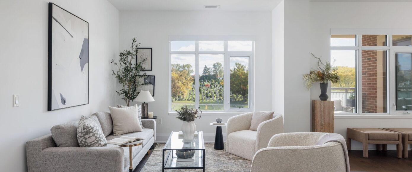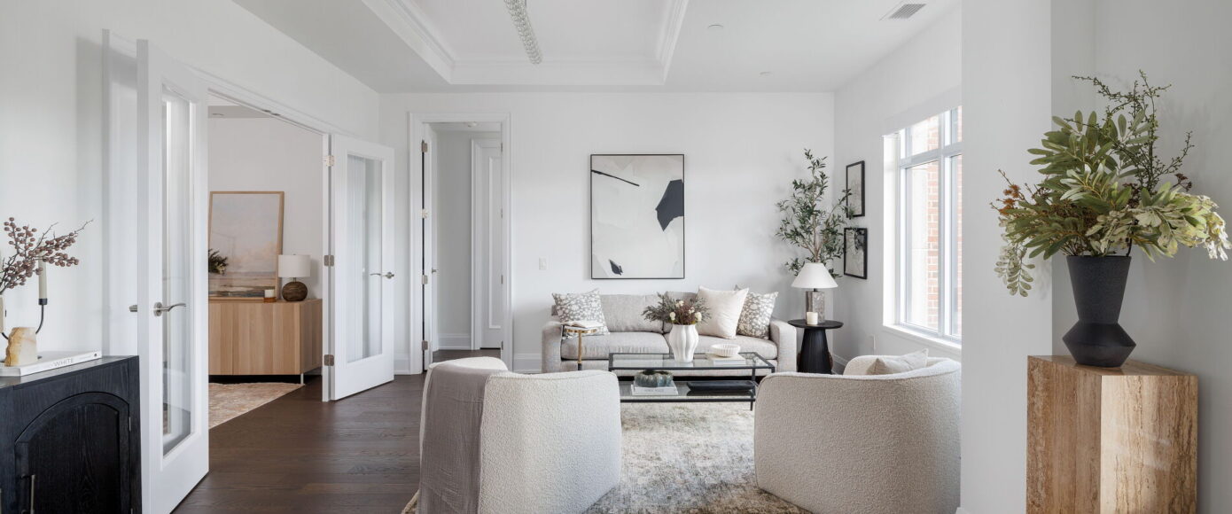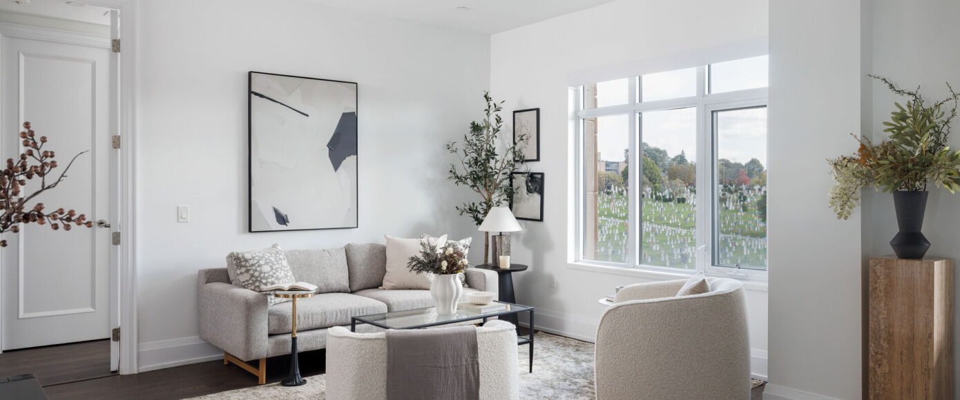 A rare opportunity to own one of the larger suites in the exclusive Sherwood by Huntington, a Tridel- built boutique residence poised at the edge of Lawrence Park. This 1589 sqft 2 bedroom plus den, 3 bath suite is tailored for those seeking quiet sophistication in a serene, park-like setting – with sweeping South-facing views over uninterrupted greenery and city skyline beyond, evoking the feel of Central Park from midtown Toronto.