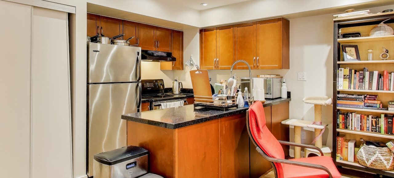 The kitchen is modern and open-concept. It is designed for both everyday living and entertaining alike. Feautres sleek cabinetry, quality appliances, generous counter space, and a breakfast bar that seamlessly connects the kitchen to the living and dining areas.