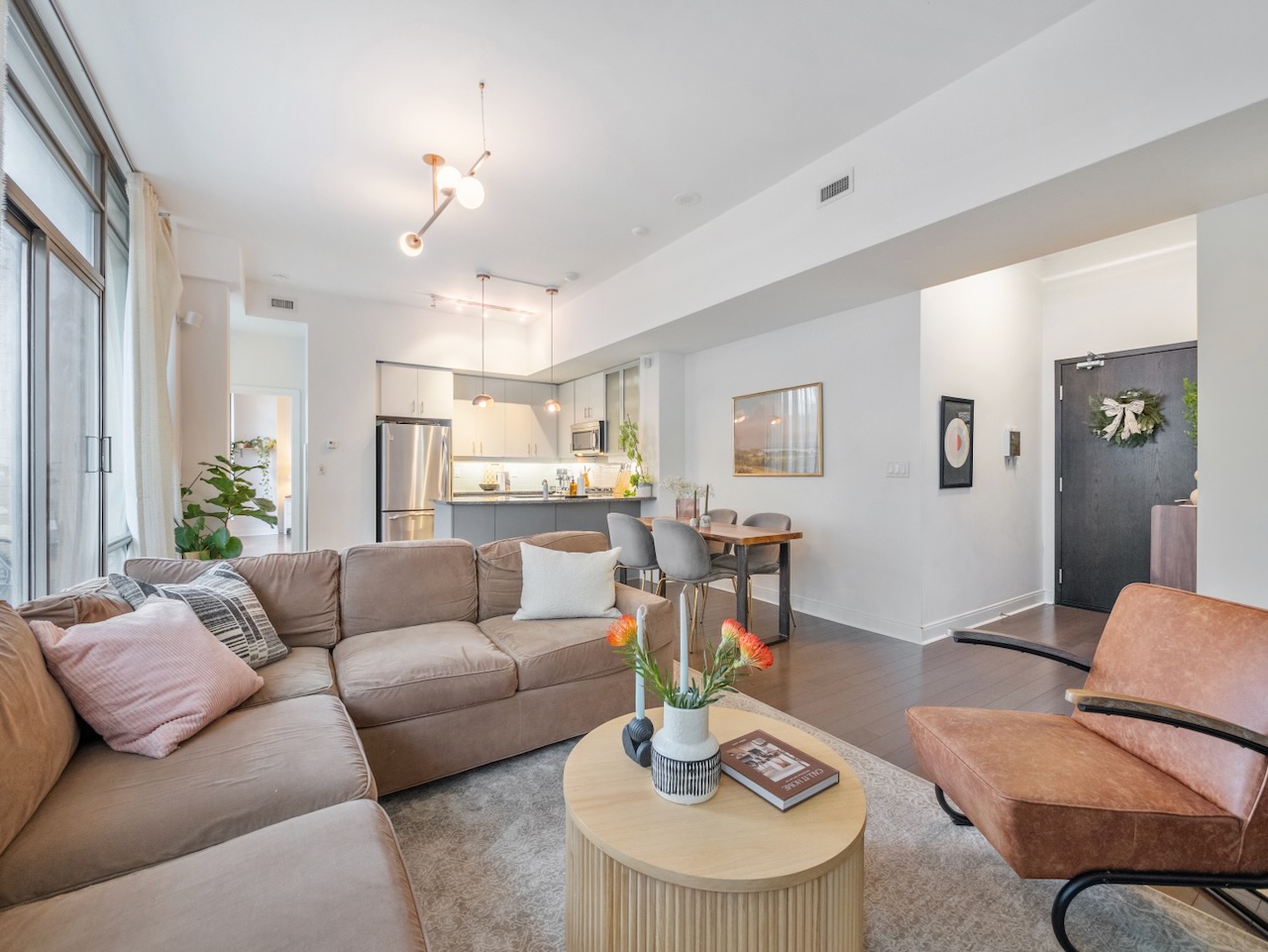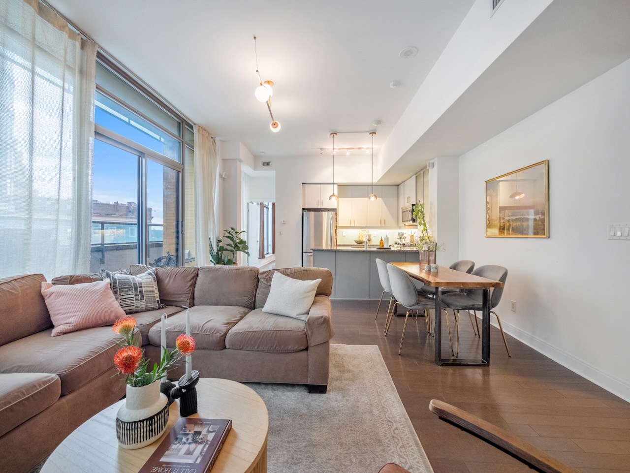 Elegantly positioned in the heart of prestigious Yorkville, this refined two-bedroom two bathroom residence is offered within a coveted low-rise building with fewer than 100 suites. A well-proportioned split floor plan enhances both privacy and flow, anchored by a light-filled open-concept living and dining space ideal for everyday comfort and entertaining. Soaring 9-foot ceilings, floor-to-ceiling windows, and rich hardwood flooring create a calm, contemporary atmosphere throughout. The thoughtfully designed kitchen features quality finishes, a gas cooktop, stainless steel appliances, and granite countertops, seamlessly integrated into the open living space for effortless functionality and hosting of friends and family. Multiple sliding doors open to a generous terrace that spans the full length of the suite, offering a seamless connection between indoor and outdoor living – an increasingly rare luxury in this neighbourhood. Complete with two parking spaces, a locker, and access to excellent amenities, this residence presents a thoughtful opportunity to enjoy space, discretion, and enduring value, steps from Yorkville’s celebrated boutiques, dining, cultural landmarks, and transit.