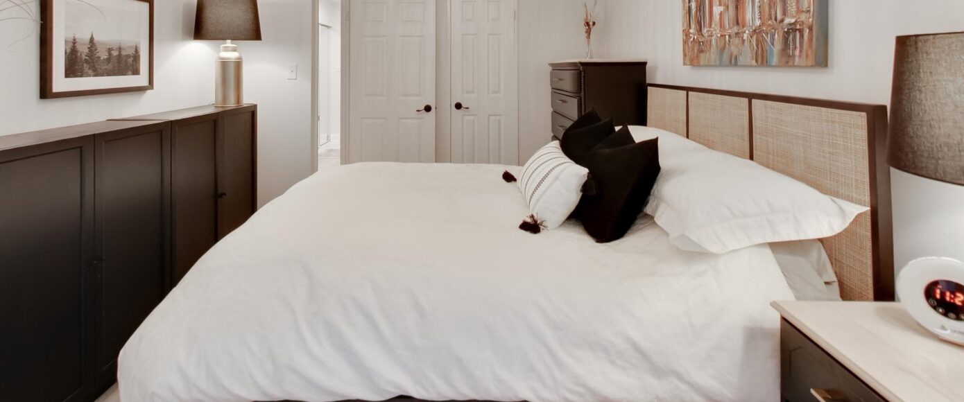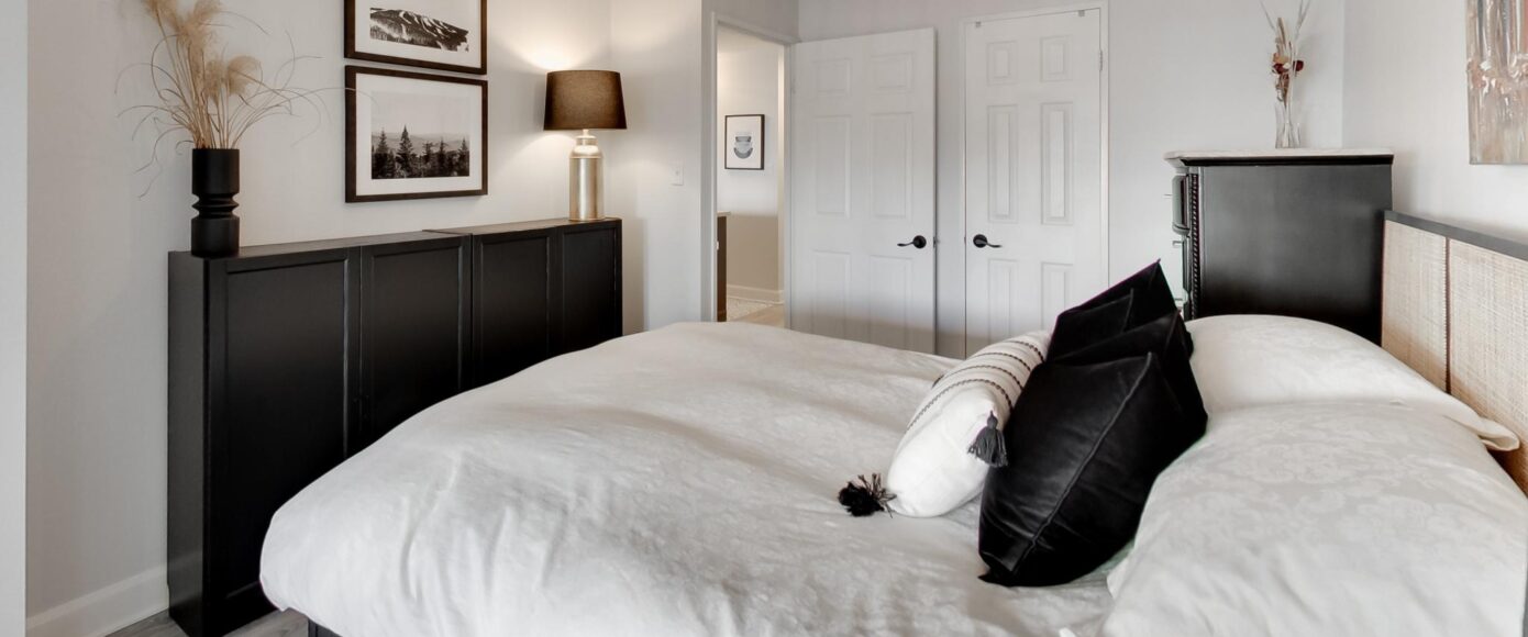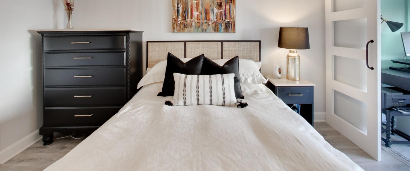 Primary Bedroom | 9’10” x 12’5” | Vinyl Floors, Walk-in Closet, Custom Barn Doors