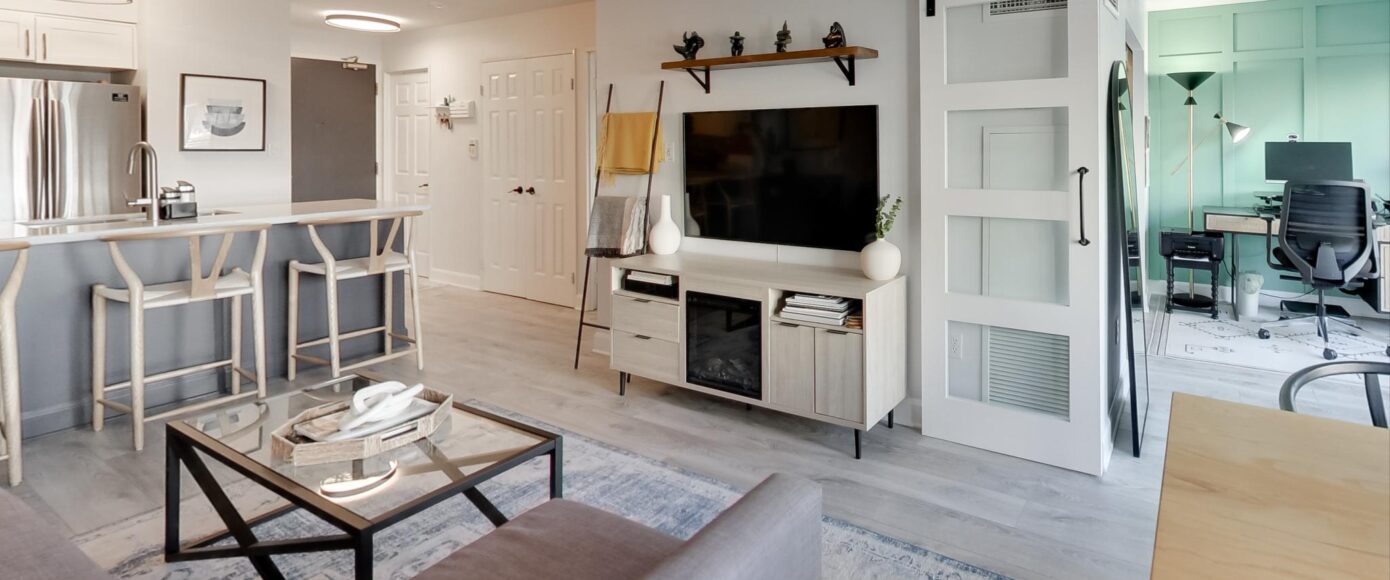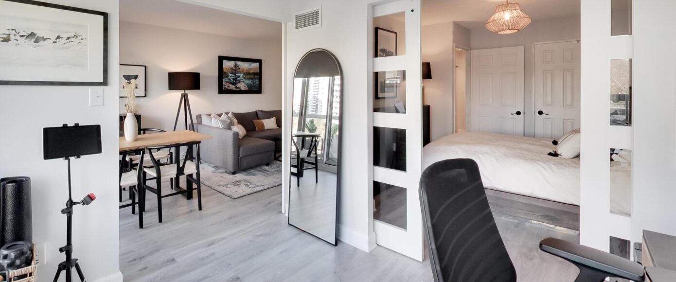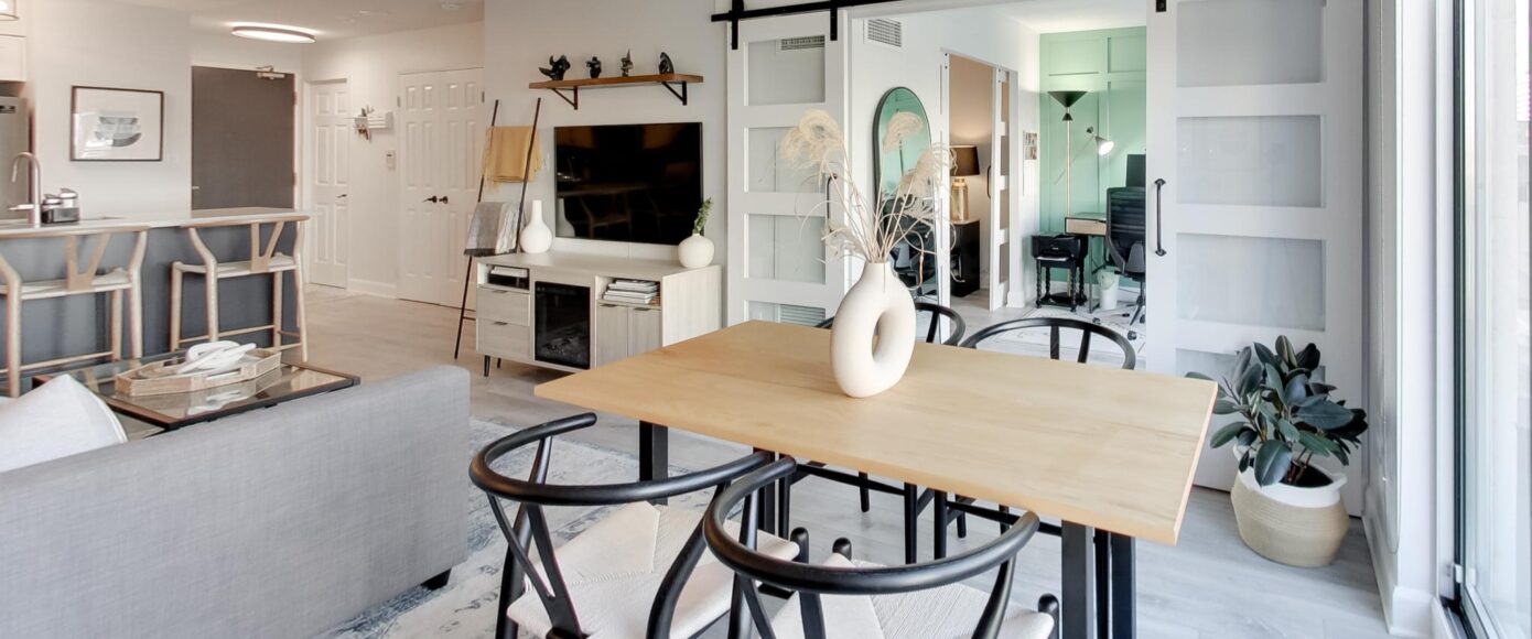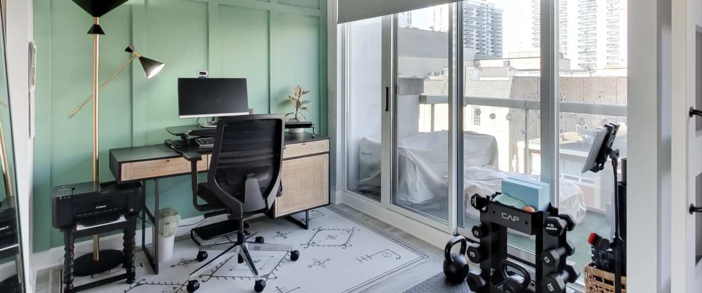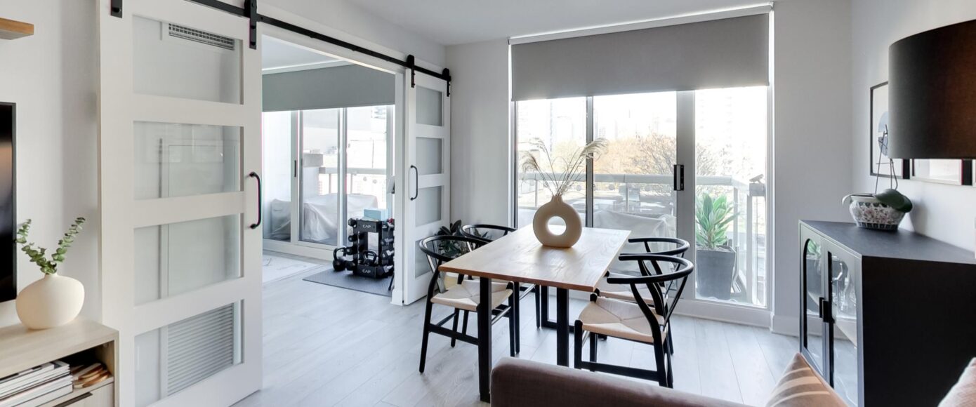 Den | 9’9” x 7’6” | Walk-out to Balcony, Vinyl Floors, Custom Barn Doors