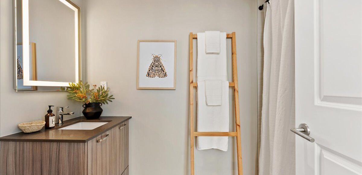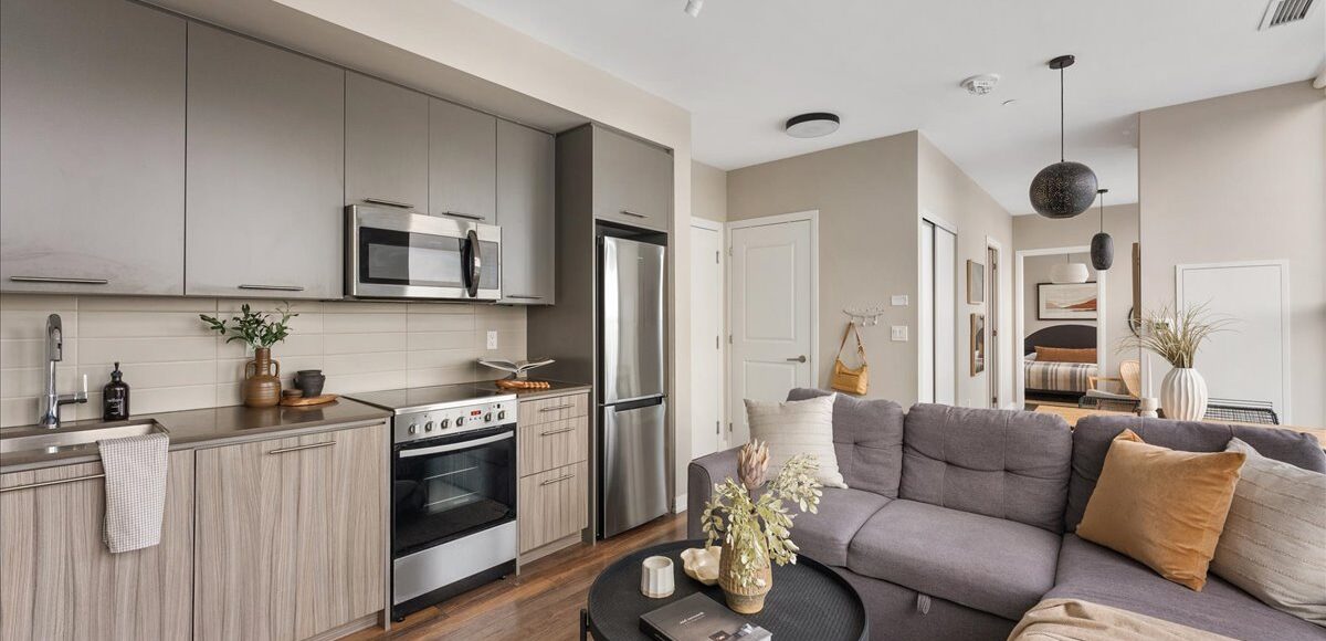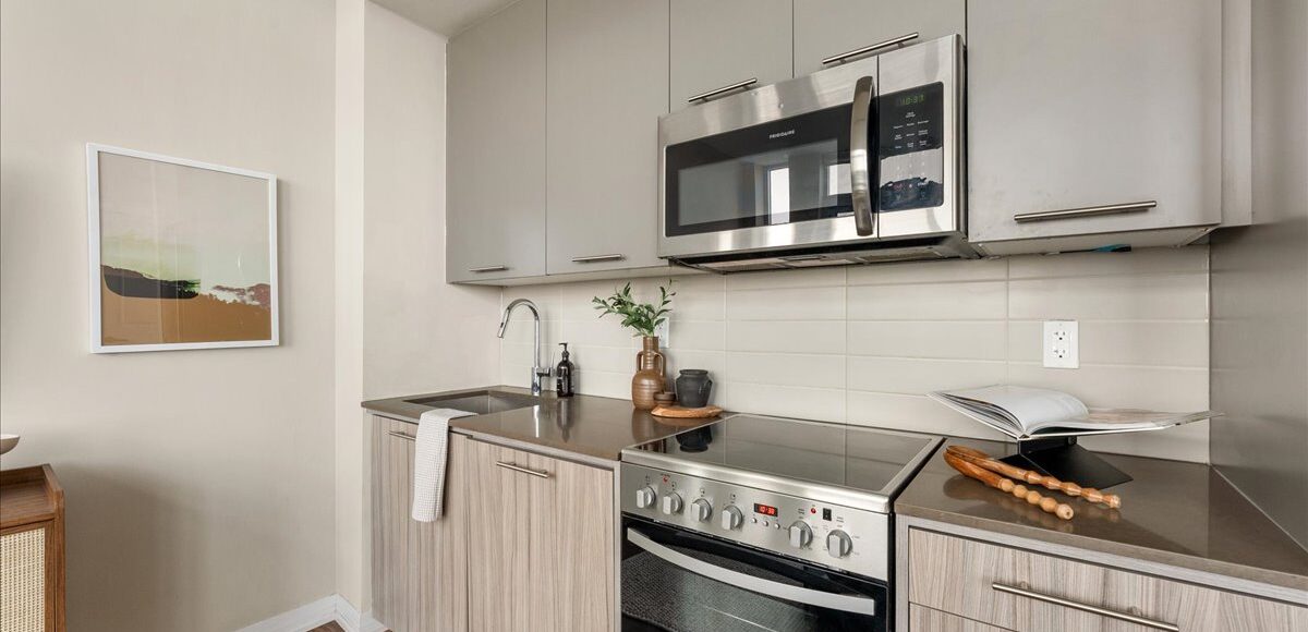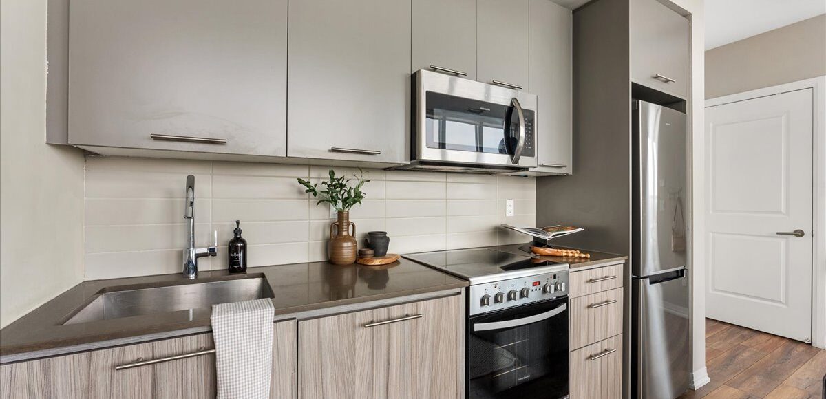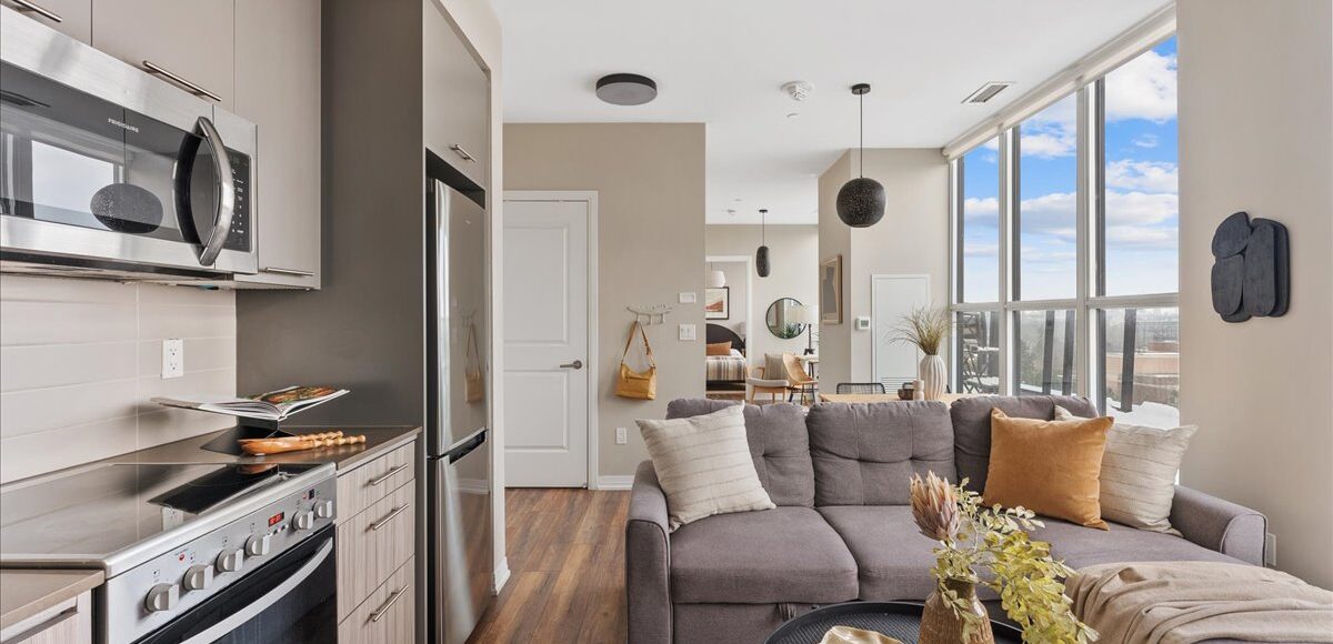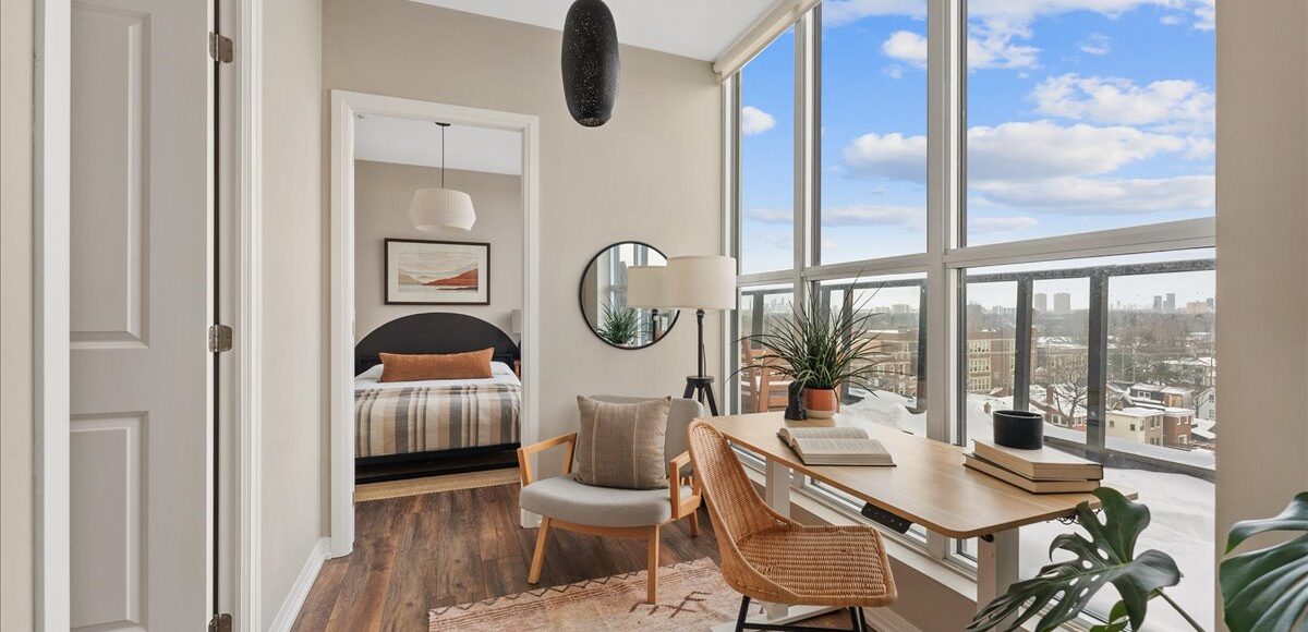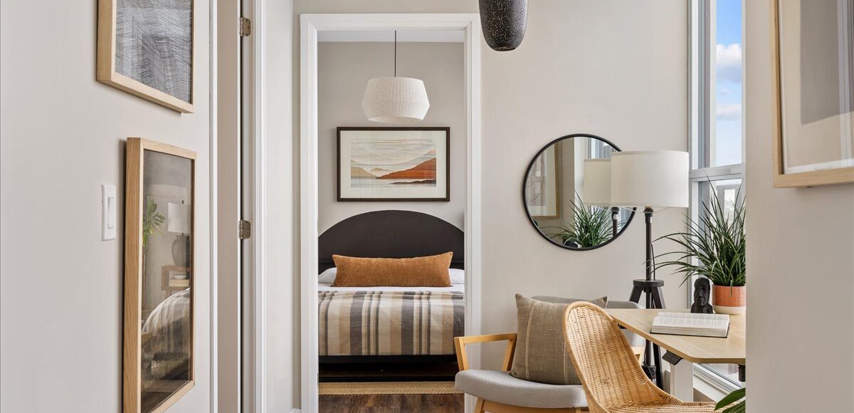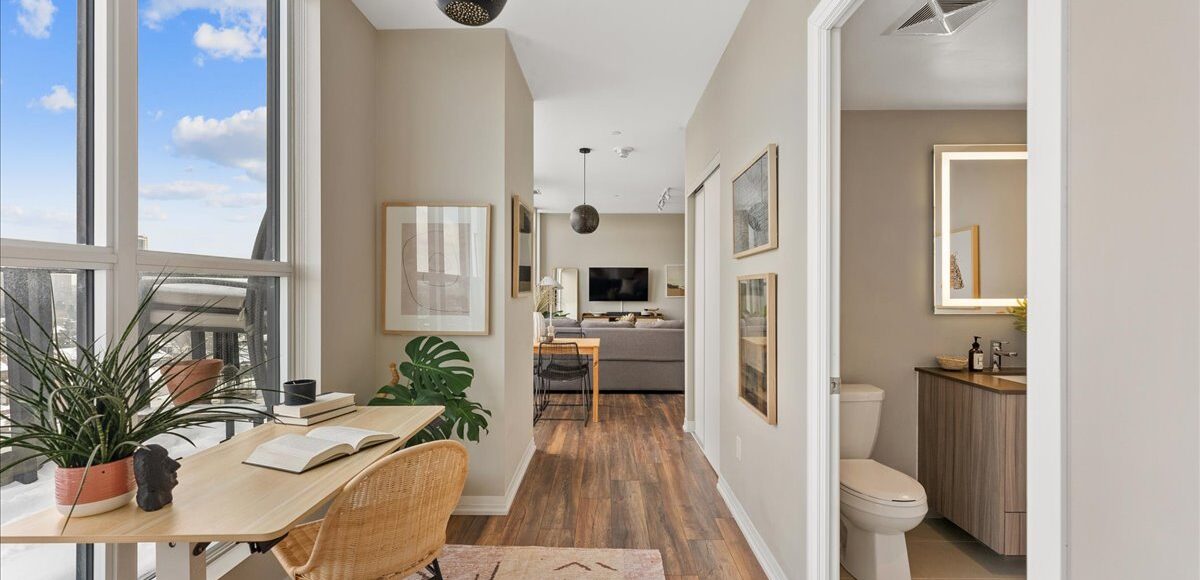 Suite 810 offers a smartly designed and impressively wide one bedroom plus den sub-penthouse plan, with floor-to-ceiling windows that pull natural light into every corner of the space. The intuitive layout combined with tall ceilings create a sense of openness and scale rarely found at this price point. Every room feels purposeful and connected, creating a home that feels far larger and functional than expected.