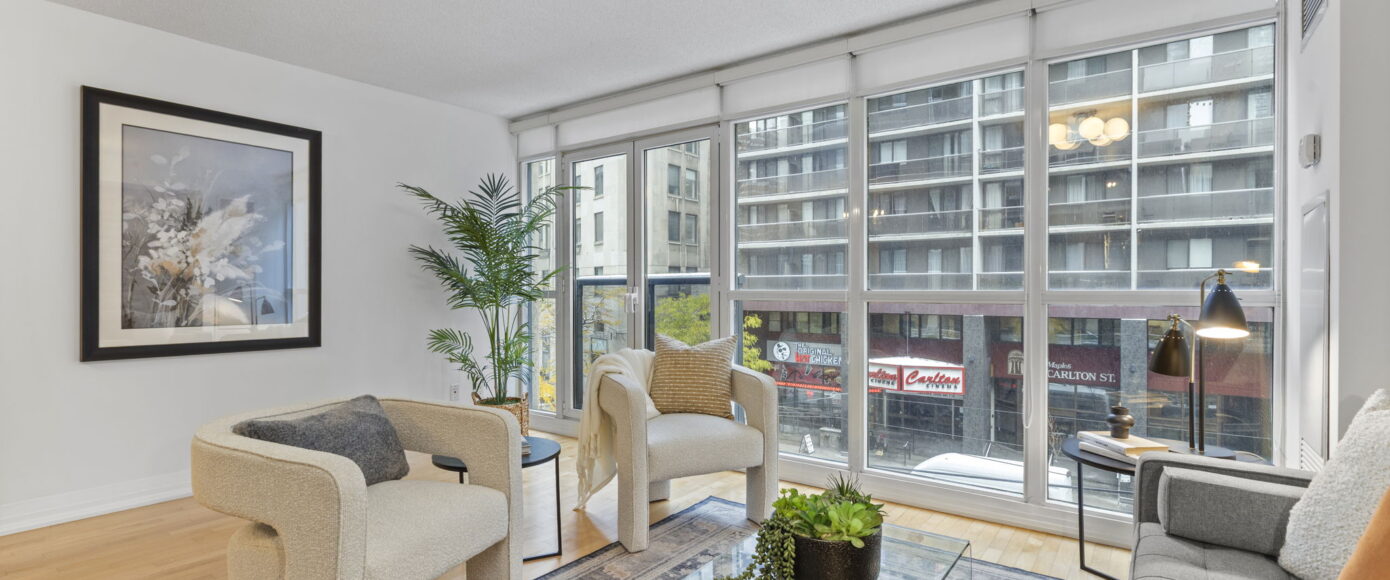 Luxury living at The Met in the heart of downtown Toronto at Yonge & Carlton! Rare FULL-SIZED living with 776 square feet of living space! Only a few of this floor plan in the entire building. Imagine having WIDE spaces full of light and air-flow with full-sized living and dining rooms that have plenty of light and air flow with north City views and a Juliette balcony!