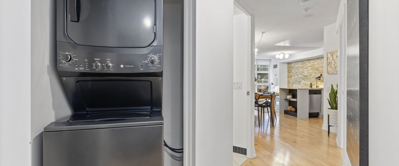 Inclusions | Fridge, stove, built-in dishwasher, built-in microwave, washer & dryer, all electric light fixtures, Juliet balcony, custom blinds and window coverings, heat pump, central air conditioning