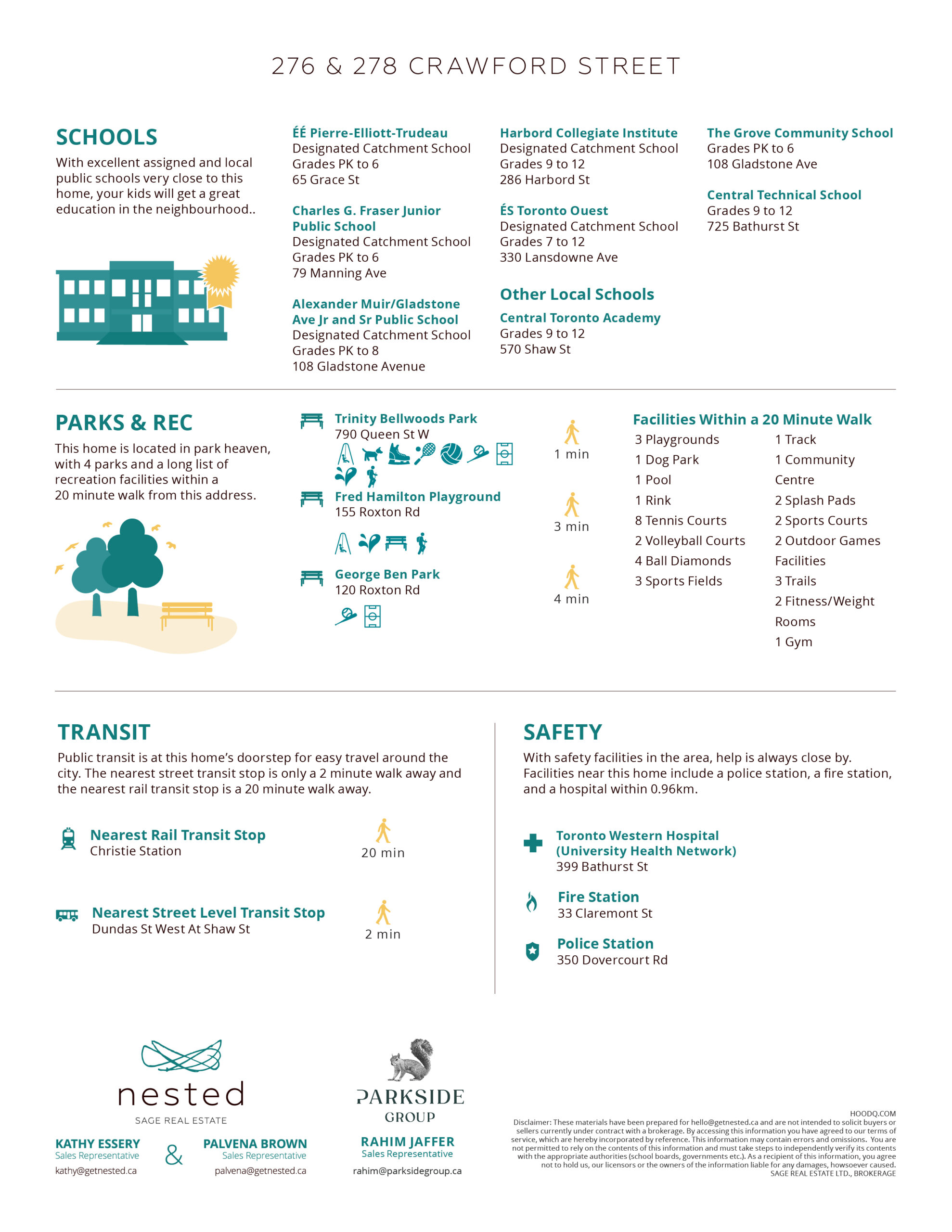 276 and 278 Crawford Street are two side-by-side freehold multiplexes on an extraordinary combined 50-foot frontage, on one of Toronto’s most storied streets, in the heart of Trinity Bellwoods. Two income-producing assets, each with its own scale, character, and investment profile. Together, eleven residential units, two laneway-fronting garages, and five parking spaces.
