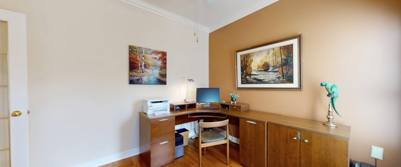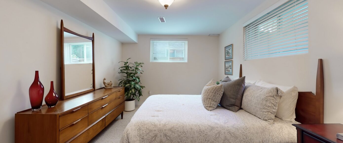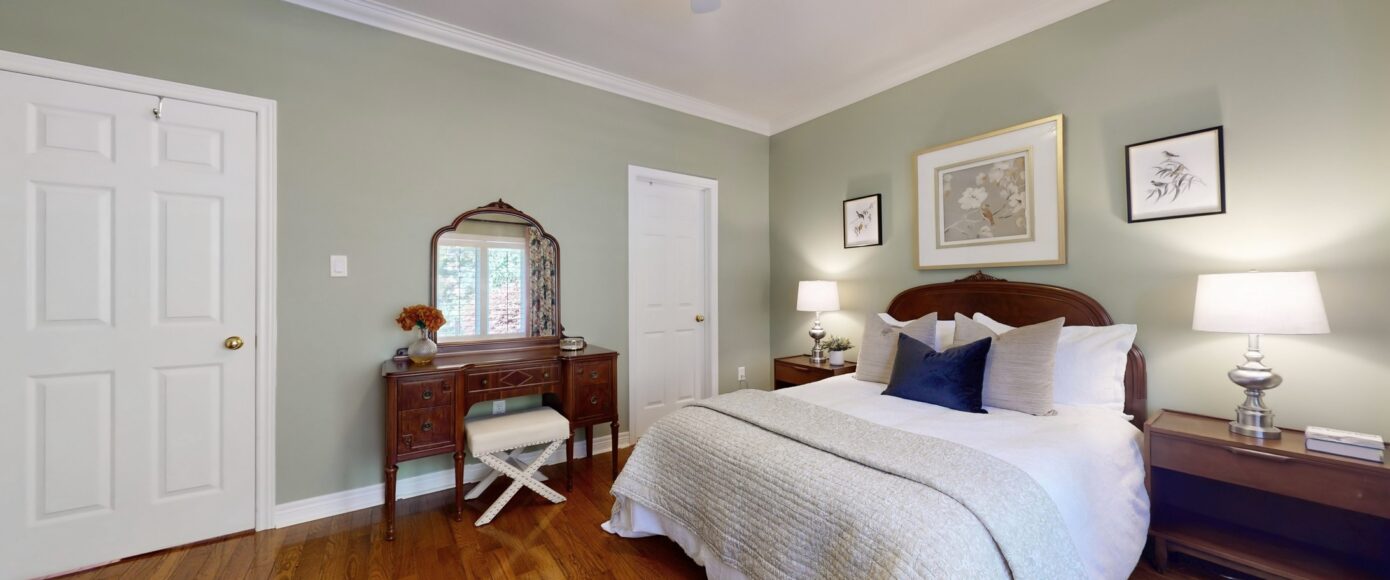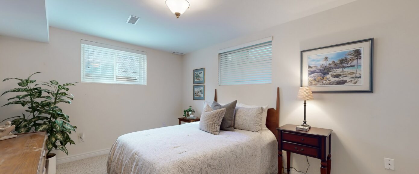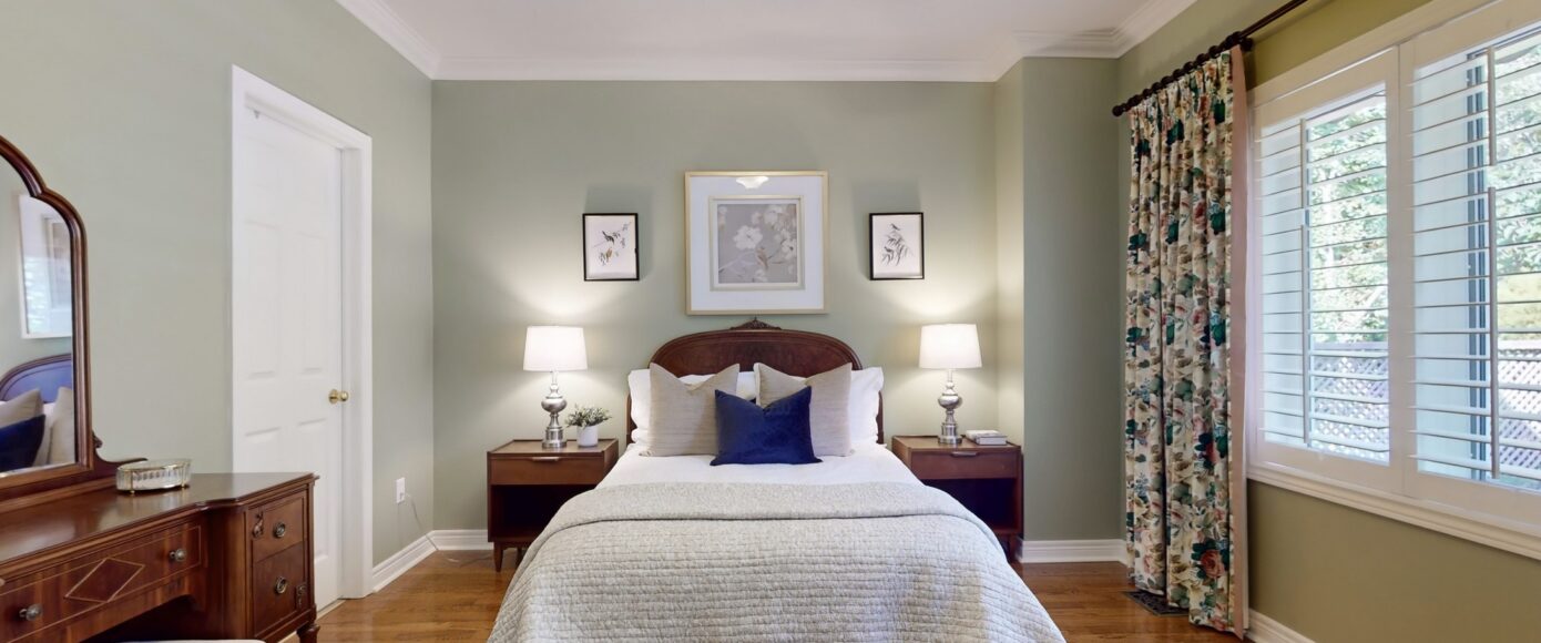 The primary bedroom is a spacious retreat that offers comfort, style, and privacy. Hardwood floors extend throughout, while California shutters add elegance and light control. A large double closet with built-in organizers offers exceptional storage, and a private three-piece ensuite adds both convenience and luxury. This serene retreat is designed for rest and relaxation, with every detail tailored for comfort.