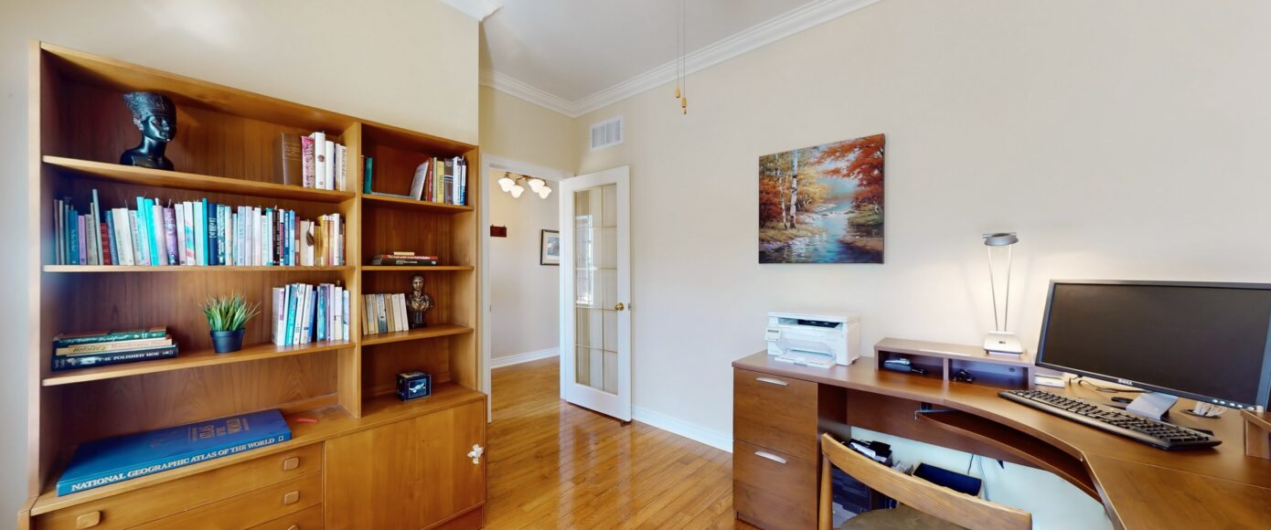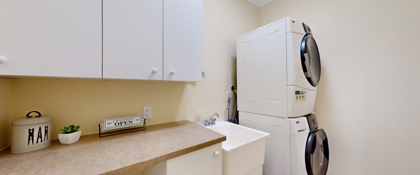 The main floor also features a bright office space overlooking the landscaped front yard. Filled with natural light, this versatile room can be used as a home office, study, or easily converted into a second main-floor bedroom to suit your needs. For convenience, a well-appointed main-floor laundry room is perfectly positioned for everyday living, adding to the thoughtful functionality of the home.