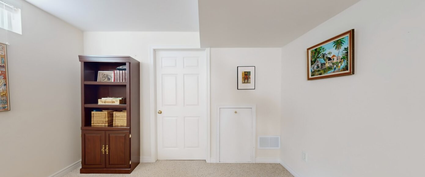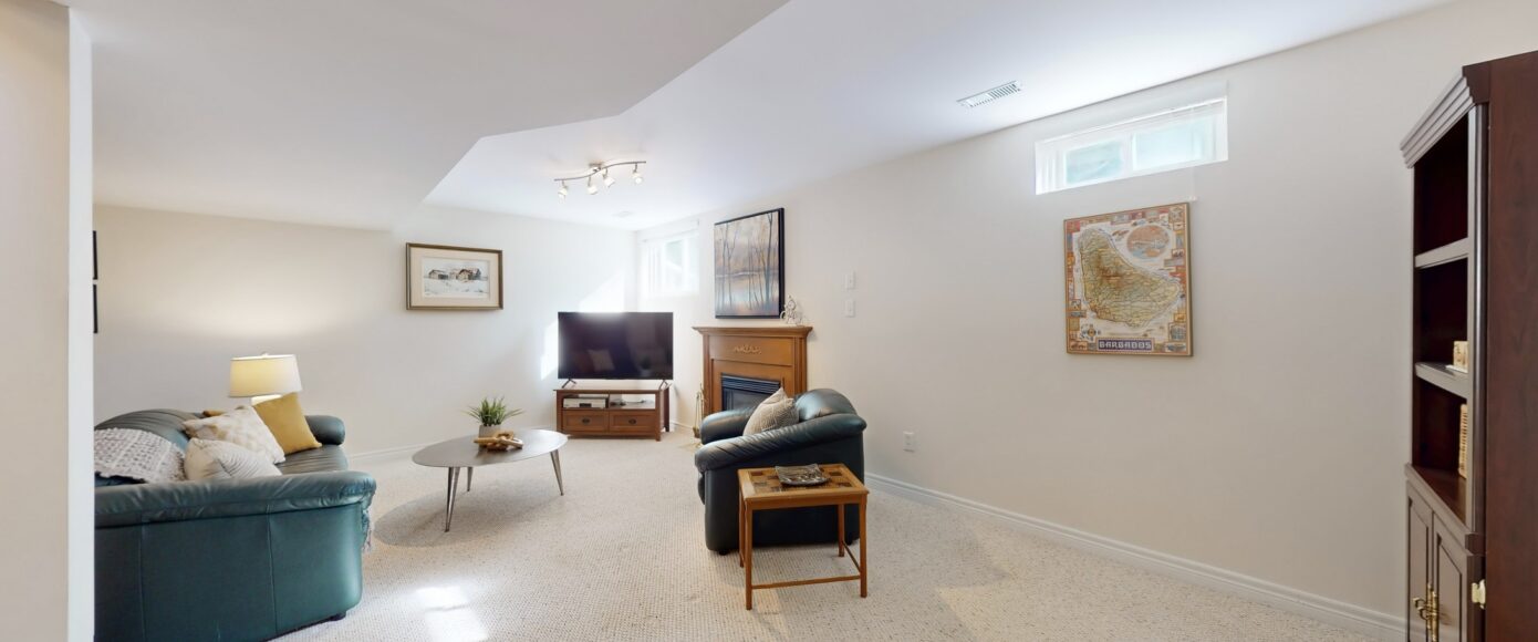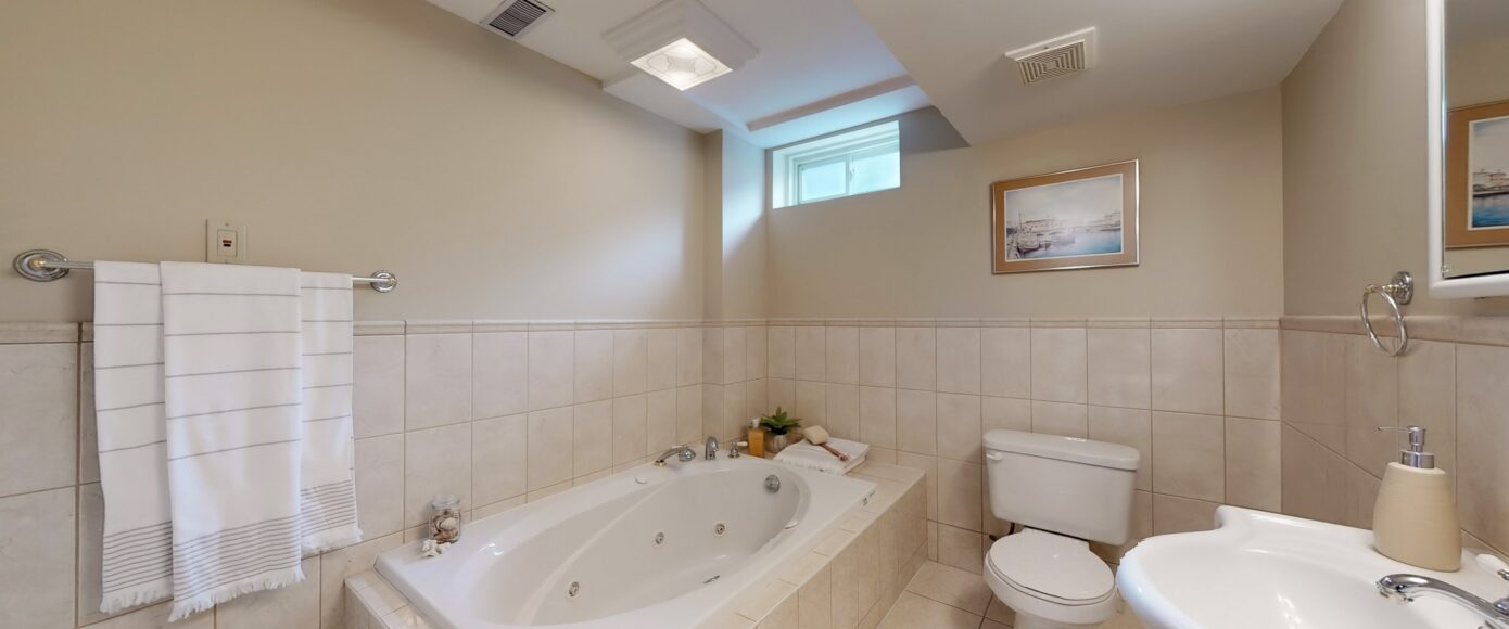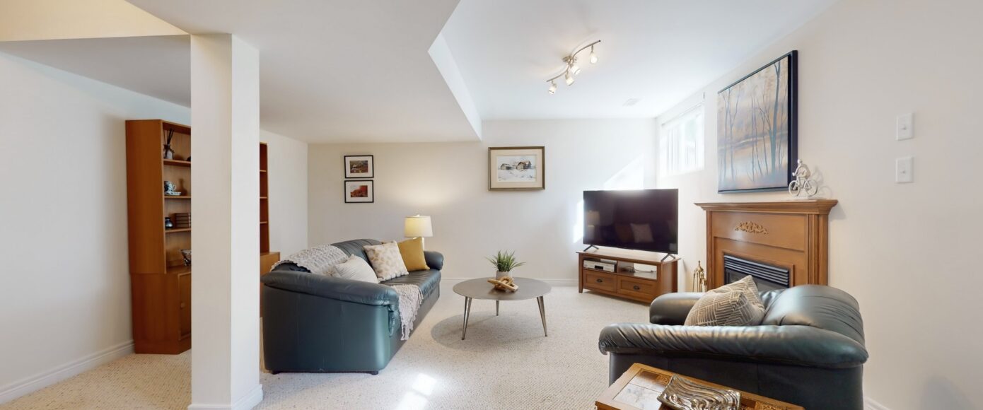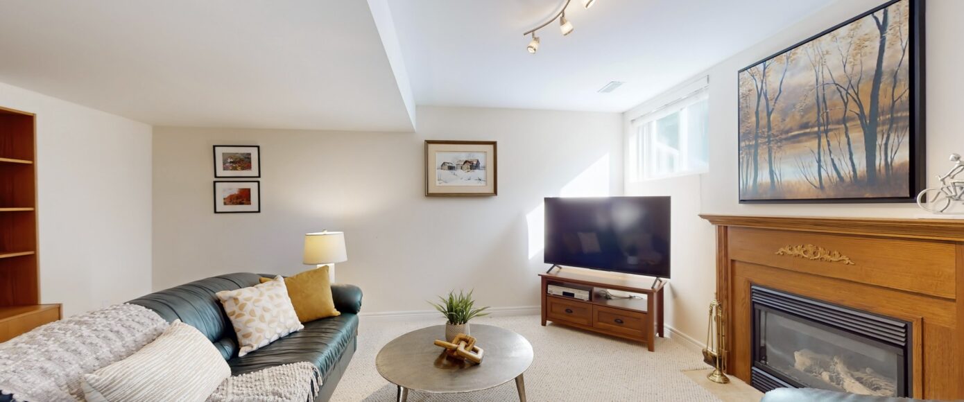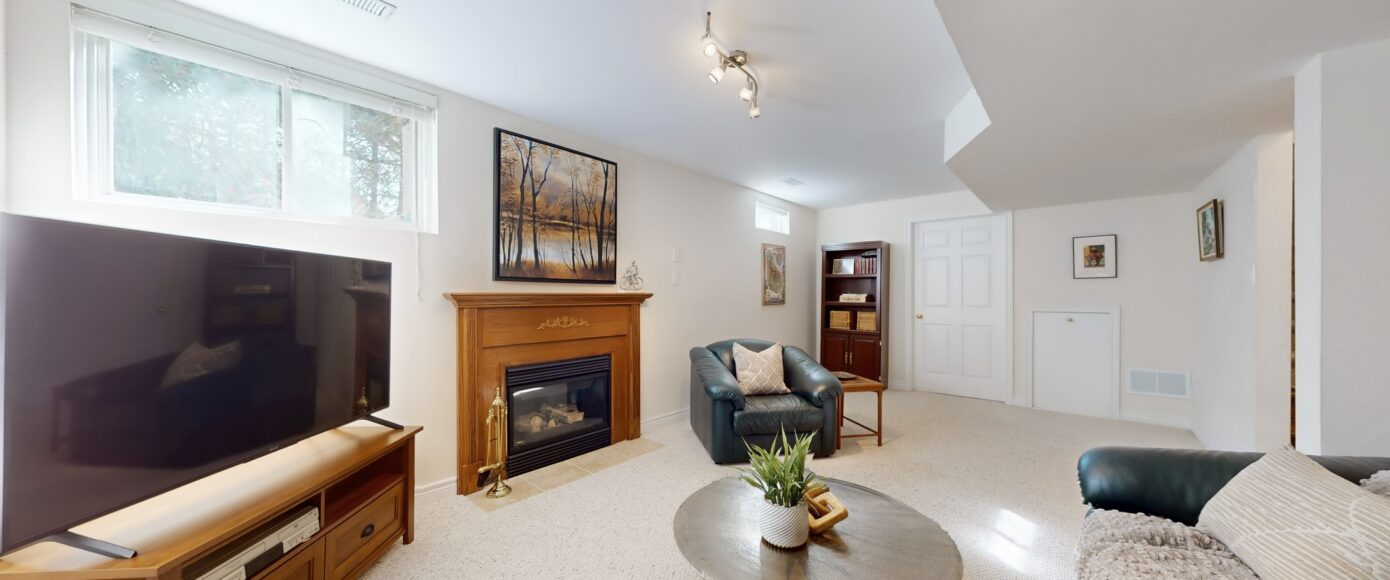 The fully finished lower level expands your living space with a large, sunny recreation room that is perfect for family gatherings, hobbies, or quiet relaxation. A second fireplace adds warmth and character to this inviting space. Oversized windows fill the room with natural light, creating a bright and welcoming atmosphere. A spacious second bedroom on this level offers great natural light and a generous double closet with built-ins, ensuring comfort and privacy for family or guests. Completing the lower level is a family-sized bathroom with a large soaker tub — a space designed for relaxation and rejuvenation. A large utility room provides abundant storage and room to personalize according to your needs.