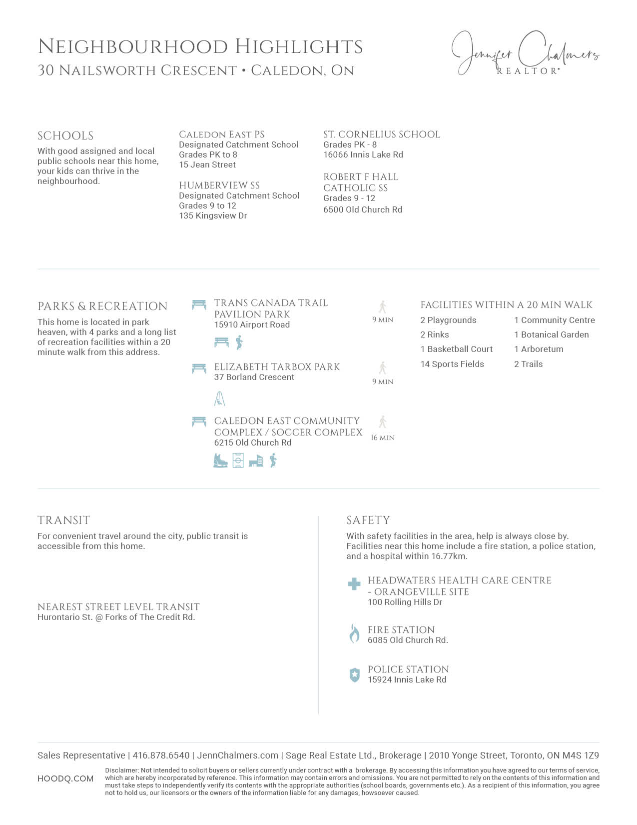 Welcome to 30 Nailsworth Crescent — a beautifully renovated bungalow in an exclusive enclave of Caledon East, offering an extraordinary blend of modern comfort, timeless charm, and effortless lifestyle. Situated on a rare corner lot with expansive landscaping and a fully fenced yard, this home offers both privacy and convenience. Surrounded by lush greenery, winding nature trails, conservation areas, and peaceful parks, it delivers a lifestyle rooted in connection to nature while keeping all of life’s essentials just minutes away — schools, shops, restaurants, and the Caledon Trailway for walking, hiking, and cycling. This is a rare opportunity to embrace the perfect combination of green living, walkability, and ease of day-to-day life in a home designed for comfort, flexibility, and beauty.