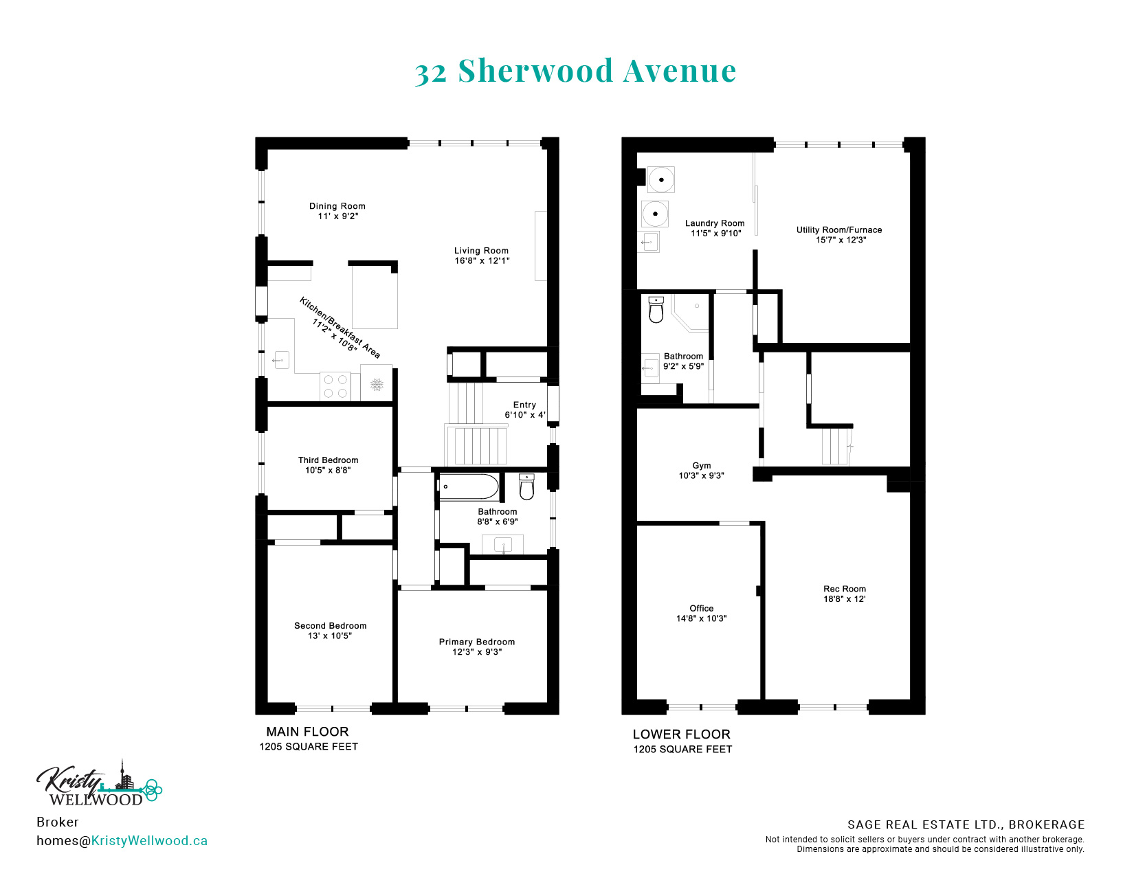 Size | 1,205 square feet above grade, 1,205 square feet below grade