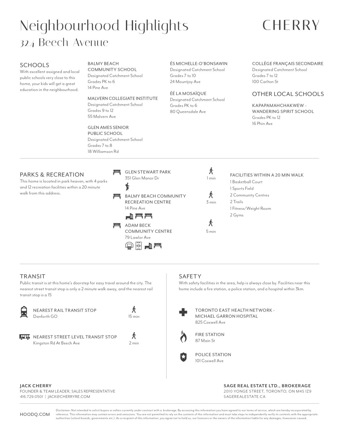 - Transit– Quick access to the DVP and Lakeshore for commuting. Kingston Road and Queen Street streetcar stops connect you downtown in just 25 minutes, with a short bus ride to Main Station and Danforth GO.