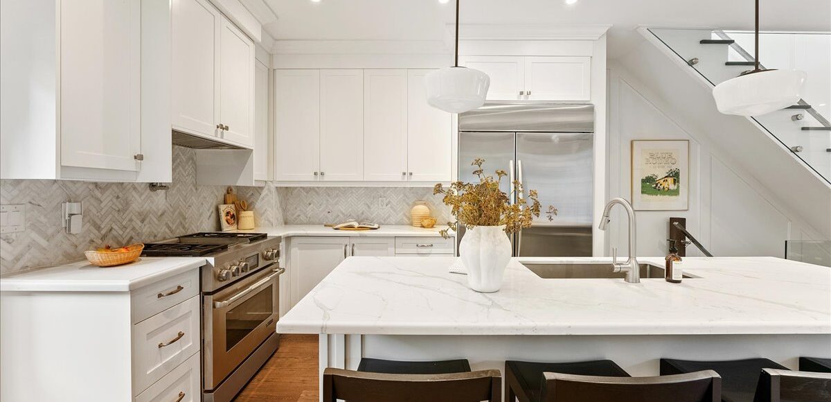 Behind its stately brick exterior and classic front porch lies a home designed to feel effortlessly elevated. From the moment you step inside, sightlines are layered yet airy, and the warmth is unmistakable. A full-scope renovation thoughtfully embraces the nuances of everyday living, approaching modern family life with purpose and a sense of calm. Rich hardwood floors, crisp white walls, a steam fireplace, custom-designed kitchen, and tall ceilings come together in a timeless expression of coastal sophistication.