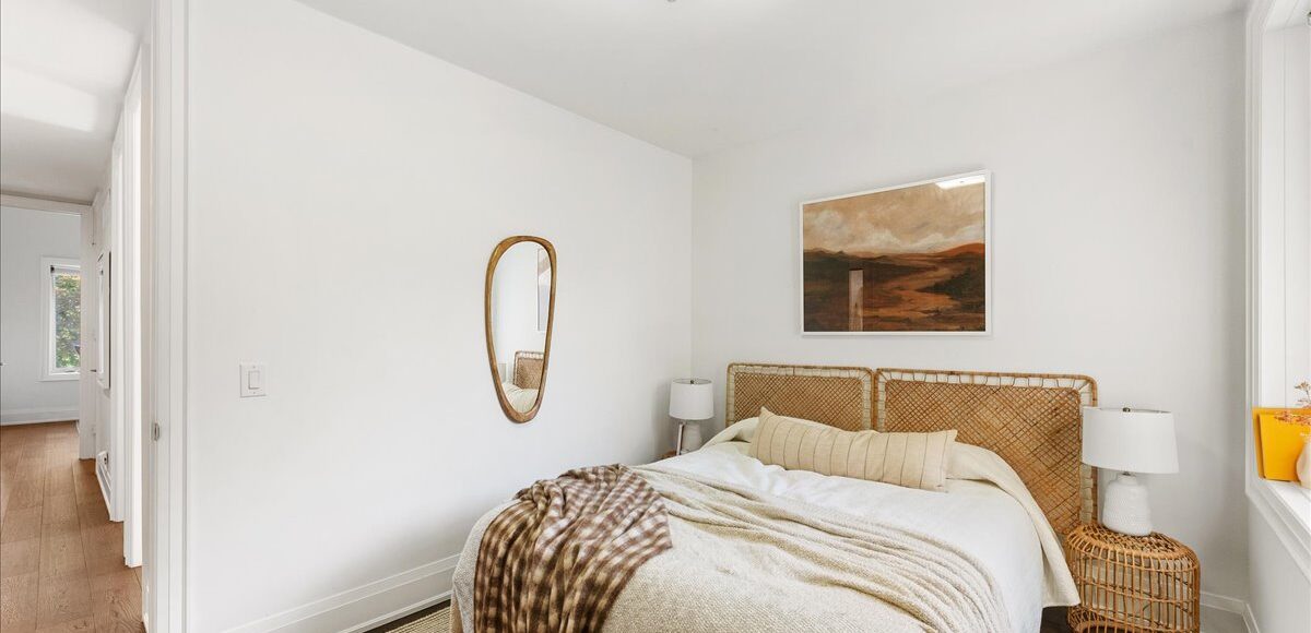 Upstairs, tall ceilings continue to lend a sense of quiet grandeur to private spaces designed for rest and renewal. Three beautifully balanced bedrooms and two marble-clad bathrooms, along with a conveniently located laundry, deliver a boutique-hotel level of comfort and ease.