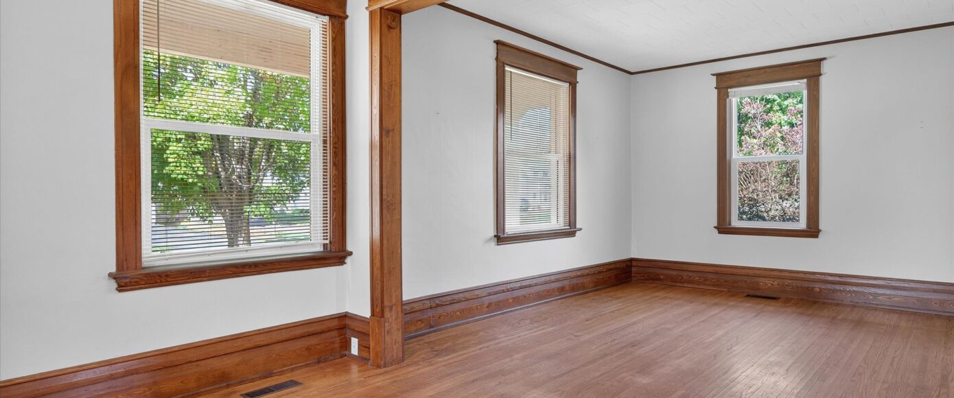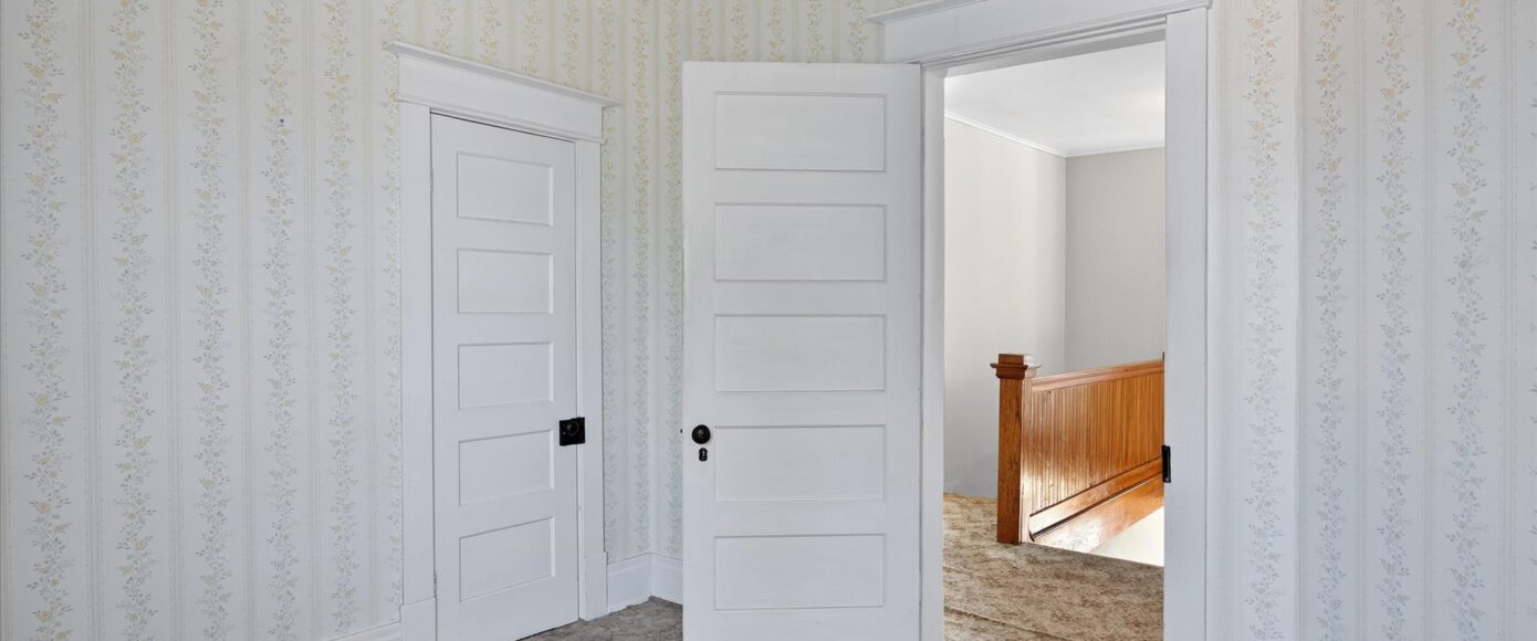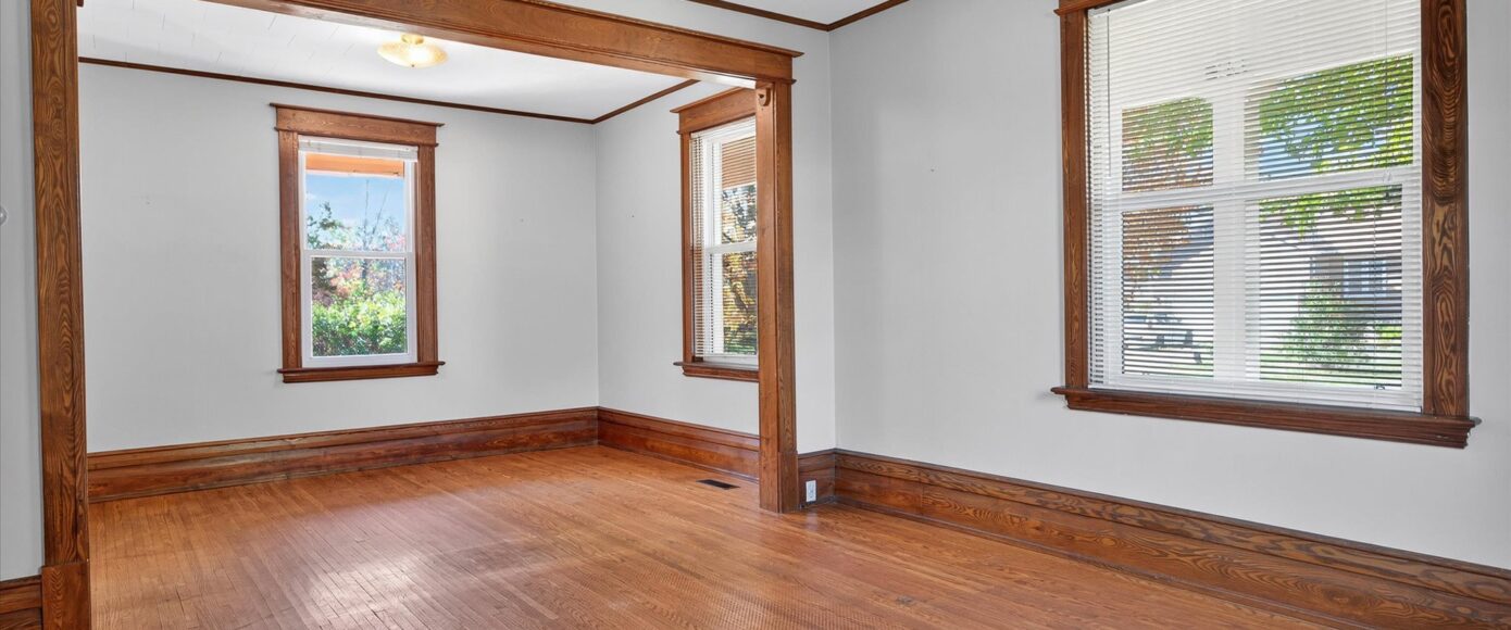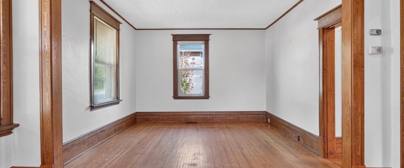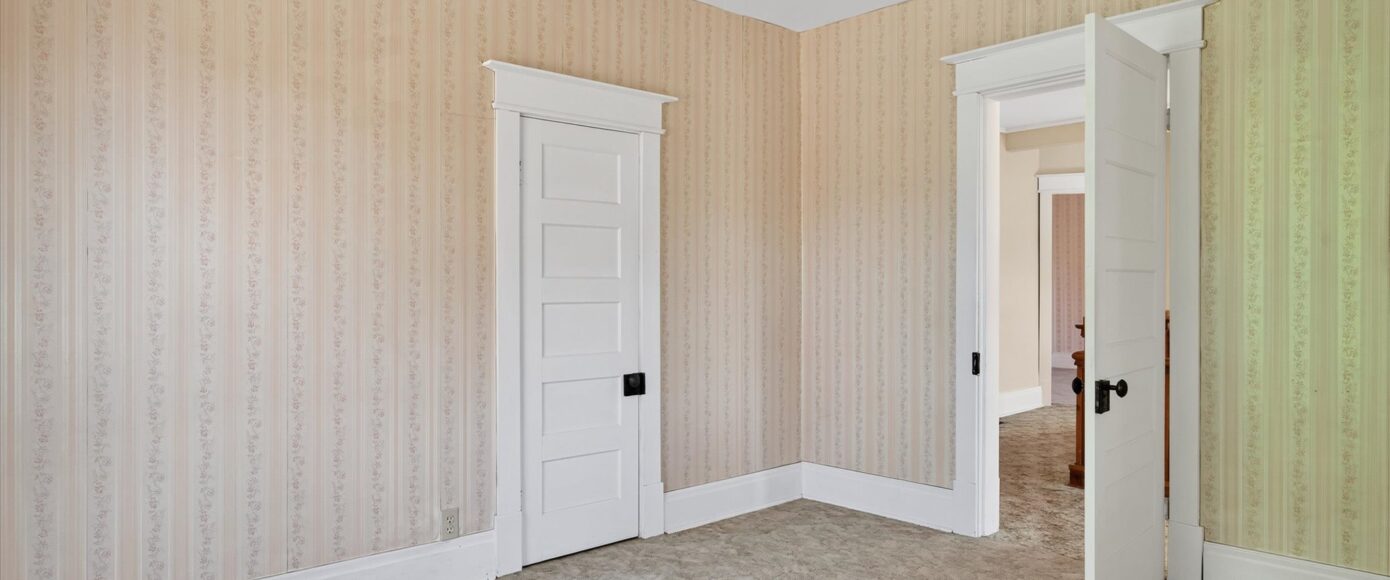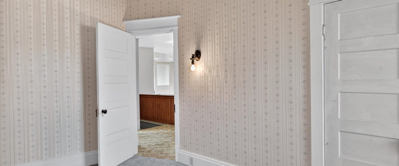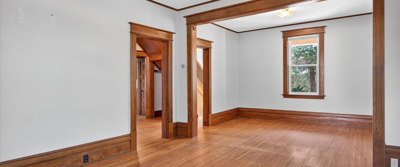 They don’t build them like this anymore…really they don’t. This five-bedroom, two-story brick home is for the discerning buyer that has an appreciation for history, craftmanship, quality and a lifestyle only a home of prominence in a small town can offer. Driving or walking down the street, this much-loved long-time family home commands your attention. Cars slow down, people walk and stare. It demands attention with its expansive front windows, long two-sided front porch and the quaint more-than-charming mini-barn stable at the side. Five good-sized bedrooms each with one or two tall and wide windows. Two very much out-of-date bathrooms, a second floor open porch ideal for snoozing on those hot summer nights, hidden pine sub floors and, get ready…a set of back stairs!! Reopen the stairs when you renovate the 60’s kitchen and watch your kids run up the front and down the back! The front hall is impressive with its oak stairs, banister and wainscotting.