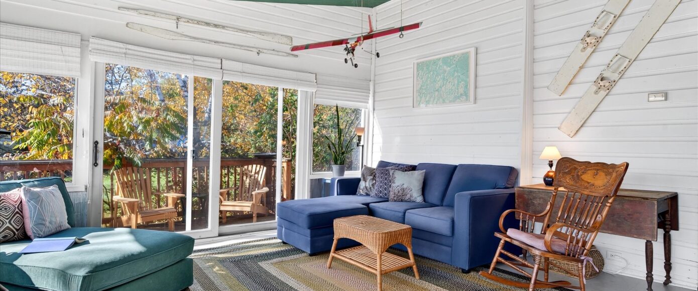 Boathouse: all furniture, all contents, fridge, stove, microwave, blue rocking chairs on deck, swing.