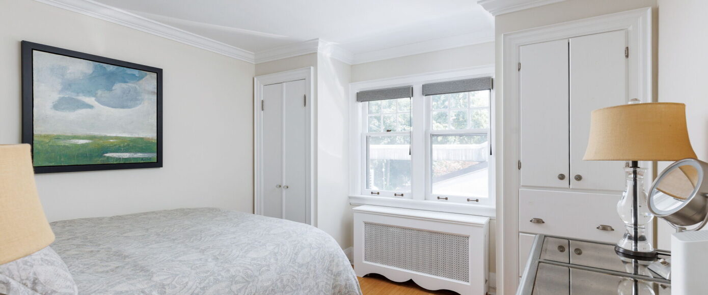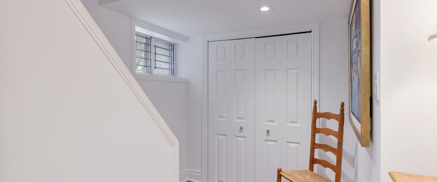 Upstairs, a skylit stairway leads to generous bedrooms, each with closets and hardwood floors. The primary suite includes double closets, leaded glass windows, and an AC wall unit (2022). The five-piece bathroom is finished with Carrera marble, subway tile, and a rain shower, complemented by sconce and pot lighting. The lower level expands the living space with a large bedroom, four-piece bath, bright laundry room, and ample storage. A rebuilt detached garage with barn doors completes this inviting property (2010), blending classic craftsmanship with carefully chosen improvements for today’s lifestyle.