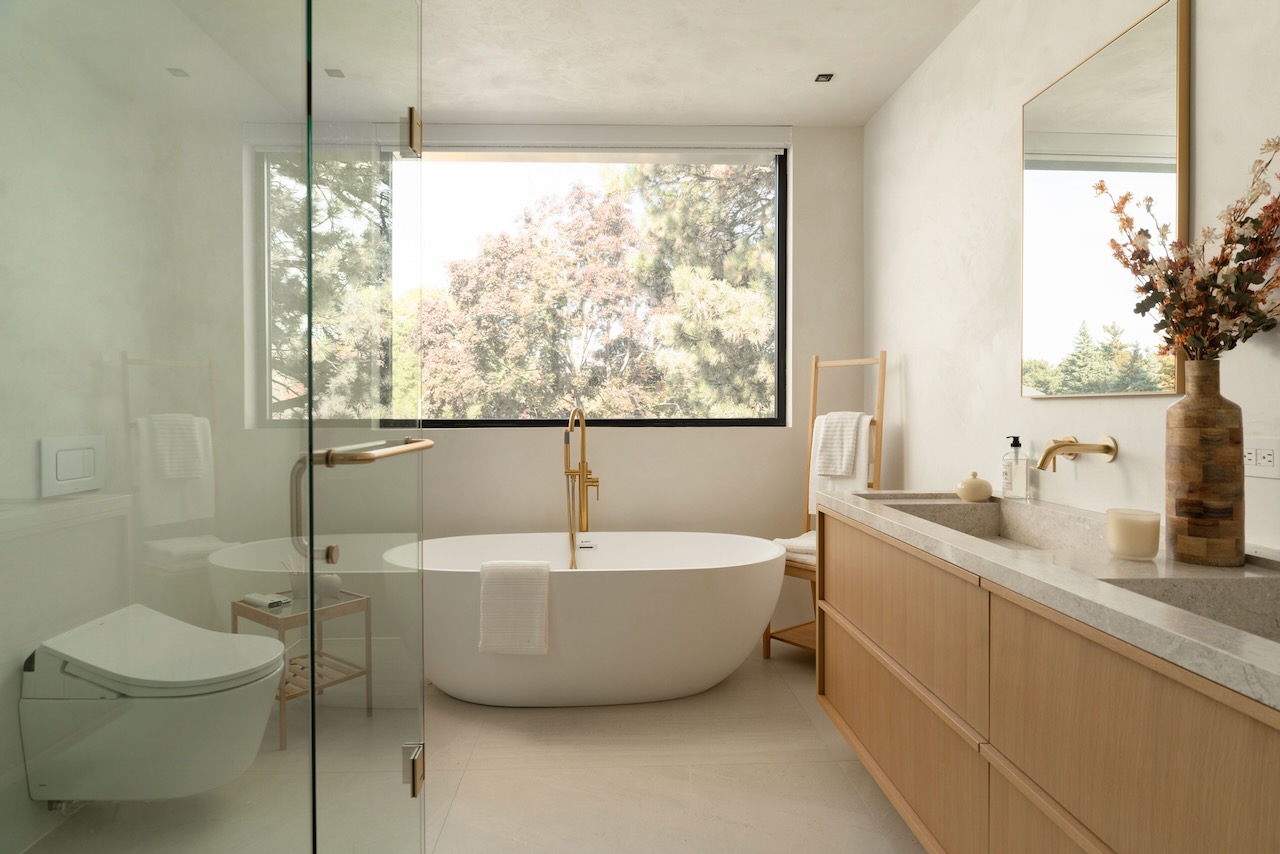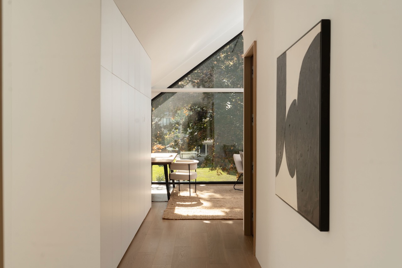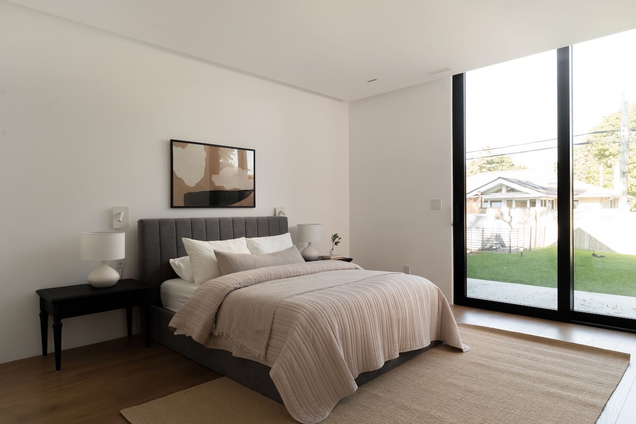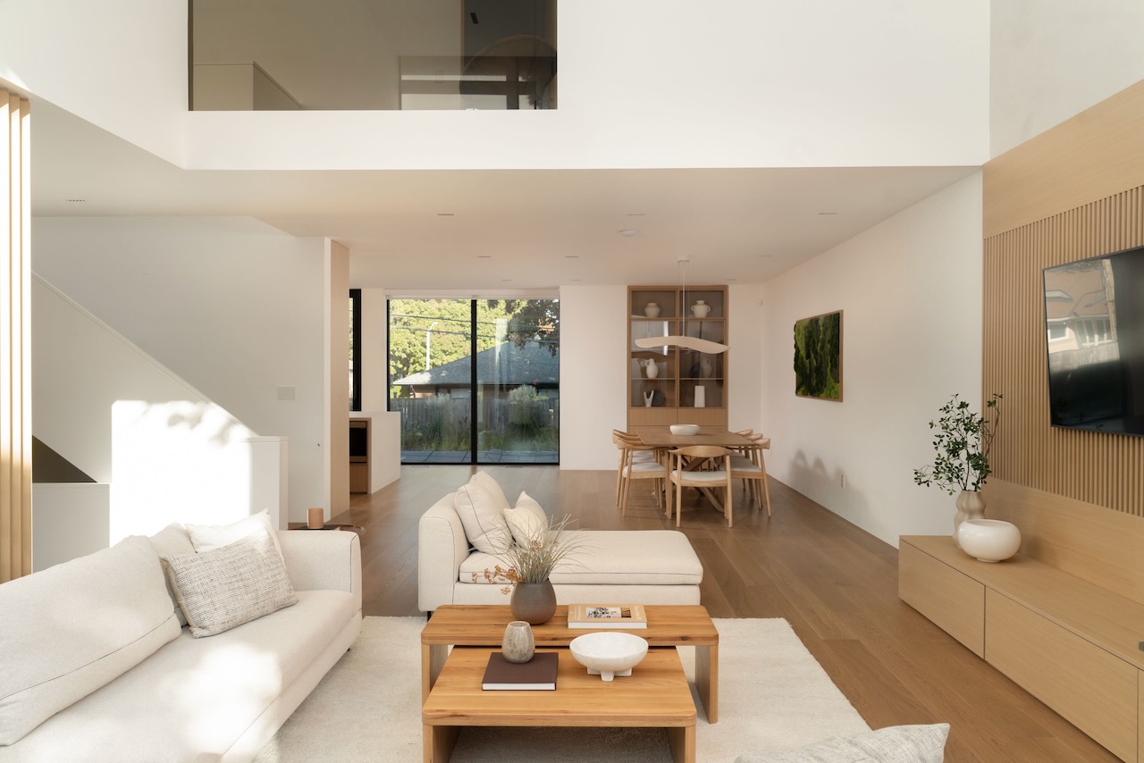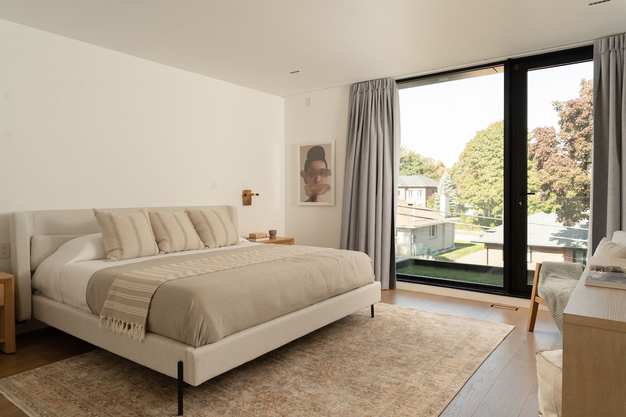 A gentle fusion of Scandinavian and Japanese design, The Emperor sits proudly in Toronto’s charming Princess Anne Manor neighbourhood. This detached custom build is an architectural wonder of the west end with smooth finishes, oak floors and panelling, plunging sightlines and cascading sunlight. Hidden doors reveal themselves at your fingertips to unassuming ensuite bathrooms dressed in creams and stone or covert closets with abundant storage –its invisible lines maintain minimalism at the forefront of its demure design. Dramatic floor-to-ceiling windows rise 21 feet high in the main living, wide open to a generously sized dining room and bright kitchen with an exceptional breakfast island and concealed coffee nook.