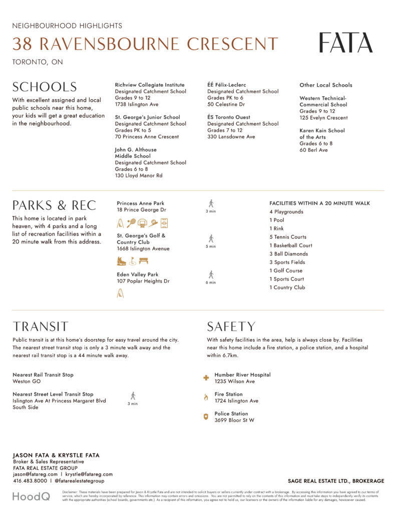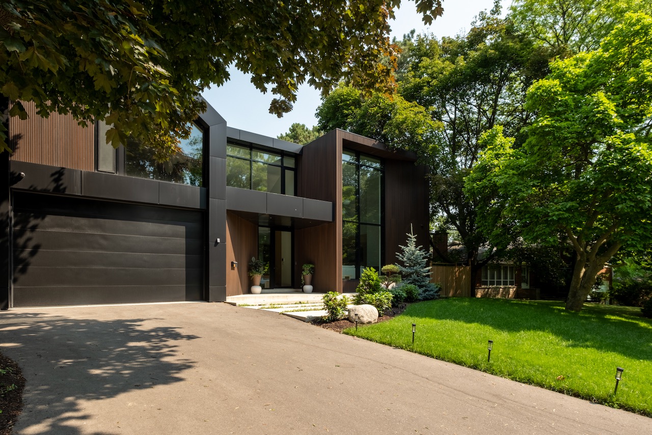 Fluting and custom millwork anchors the front entrance and frames the tv, complimenting the microcement finished gas fireplace. A constellation of soft lights quietly illuminates the home, a spectacle when the sun goes down, while its tobacco coloured facade stretches across the 76 foot wide lot and leads to an inground saltwater pool at the rear. Beneath century old canopy trees, around slow swooping roads, this one-of-a-kind modern build is two minutes from St Georges Golf Club & only ten minutes to Pearson Airport. Over 5000 total square feet, your choice of two primary bedrooms and multiple flex spaces on the top floor with the option to convert them to extra bedrooms –executives, creatives, gamers, podcasters, families and fitness enthusiasts will find limitless potential and a whole new meaning to going home at 38 Ravensbourne.