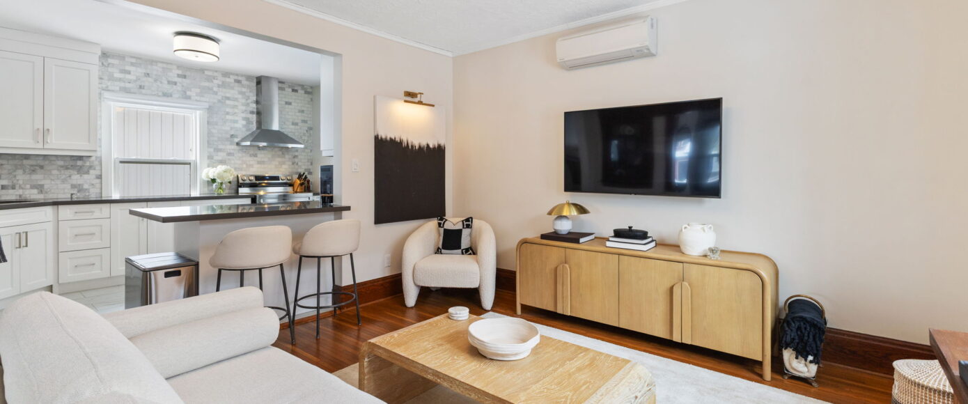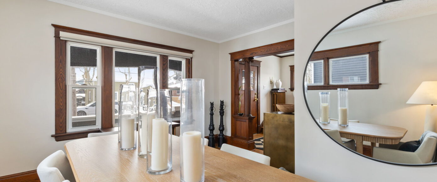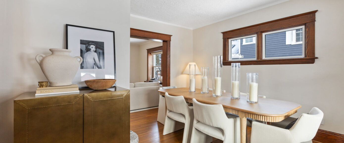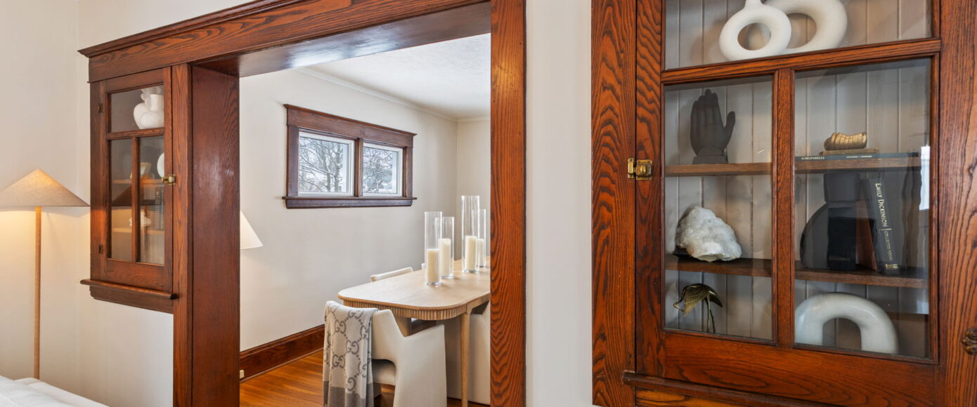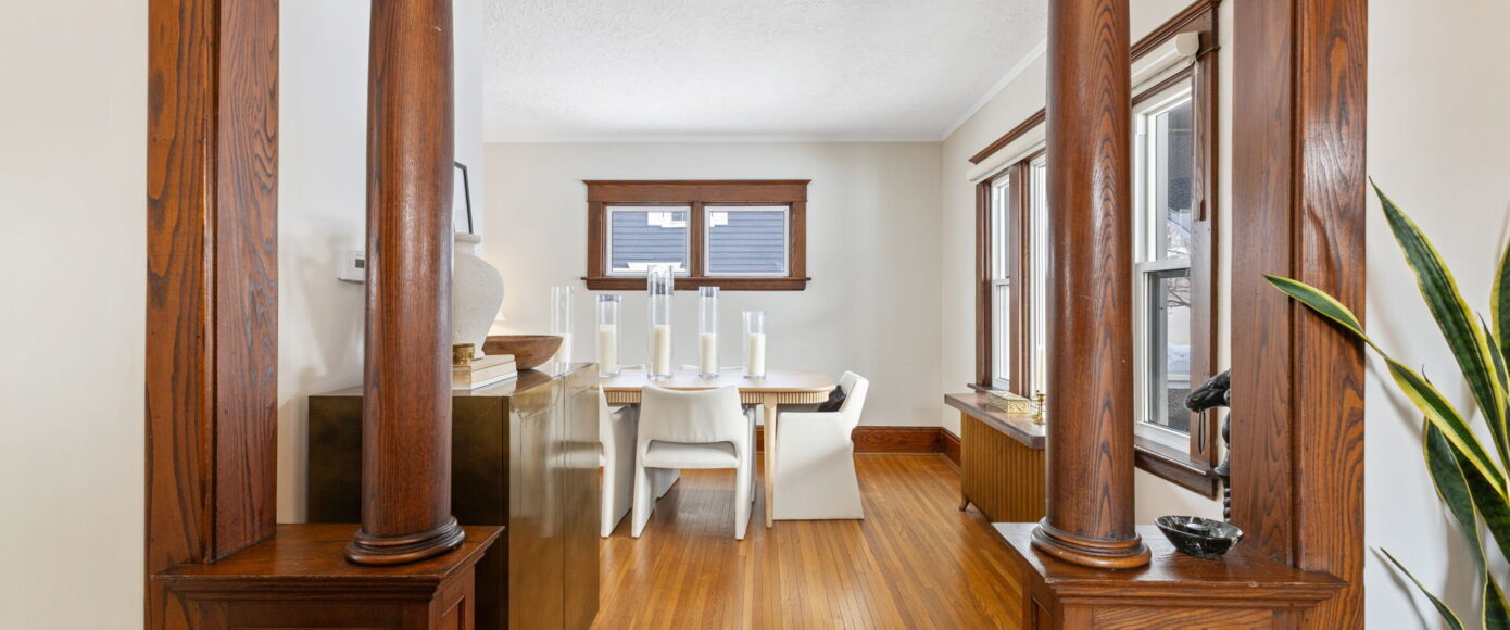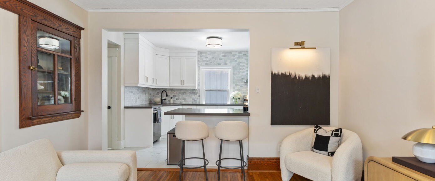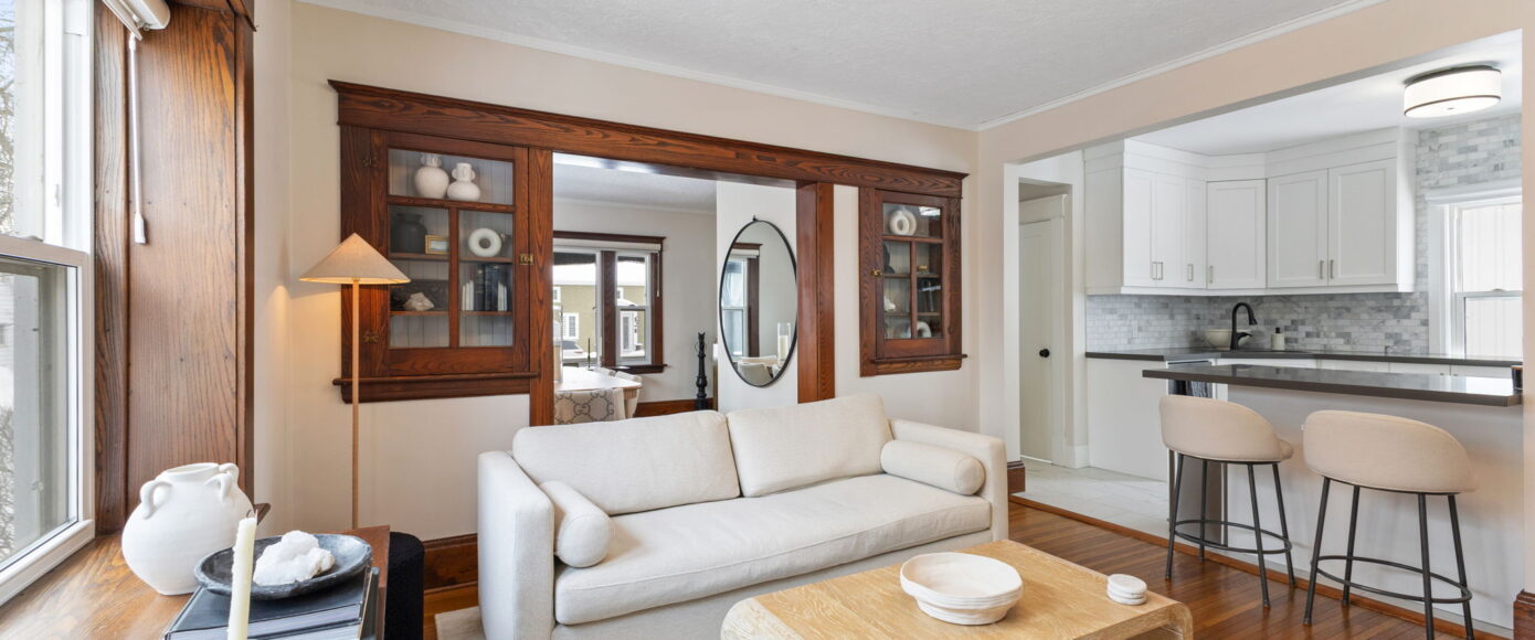 Inside, the home has been lovingly updated while preserving its historic integrity. The open-concept living and dining rooms are filled with natural light and feature high ceilings, beautifully restored period trim, and an impressive original staircase that has been meticulously brought back to life. Gleaming hardwood floors run throughout, adding warmth and continuity to the space while enhancing the home’s authentic character.