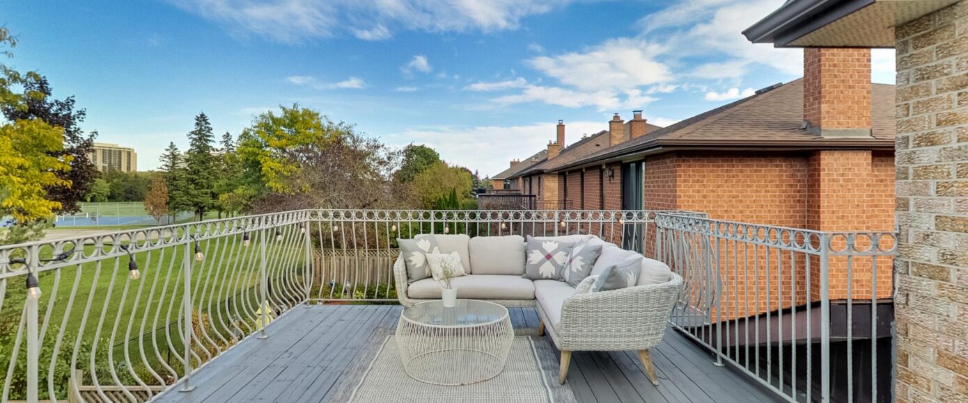 A unique, custom-built corner-lot home where the 416 meets the 905, combining bright natural light with over 5,000 square feet of comfortable living space. This amazing home features soaring ceilings, expansive windows, and a sunny skylight-lit chef’s kitchen anchored by a large centre island with ample counter space and plenty of cabinetry. With six spacious bedrooms and seven bathrooms, the home is ideal for growing or multi-generational families. The primary bedroom boasts a huge private balcony overlooking the park, a walk-through closet, and a spa-inspired 5-piece ensuite with a soaker tub. Enjoy an additional private balcony off one of the bedrooms, overlooking the side yard. A sun-filled solarium opens onto a large back deck and a wraparound yard ideal for gardeners, kids at play, and outdoor entertaining.