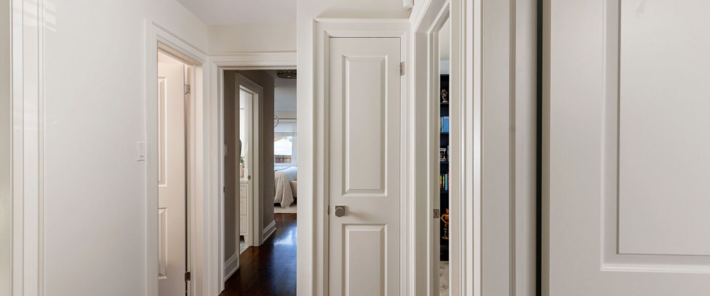 The primary suite is a calming retreat overlooking the private, south-facing backyard. Built-in closets provide elegant storage, while the luxurious four-piece ensuite features heated floors. Two additional bedrooms, each with hardwood flooring and generous closets, share the main level along with a stylish powder room.