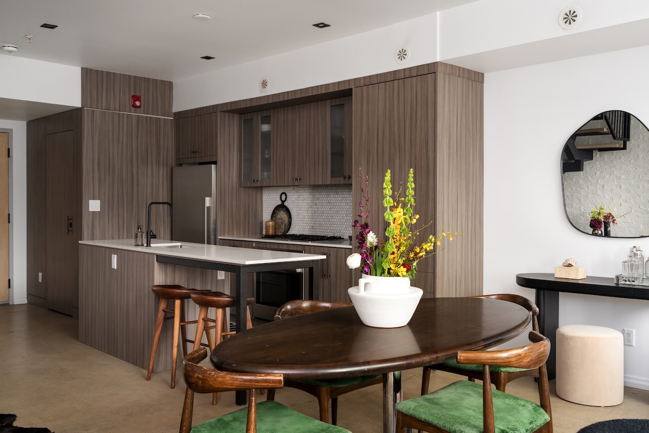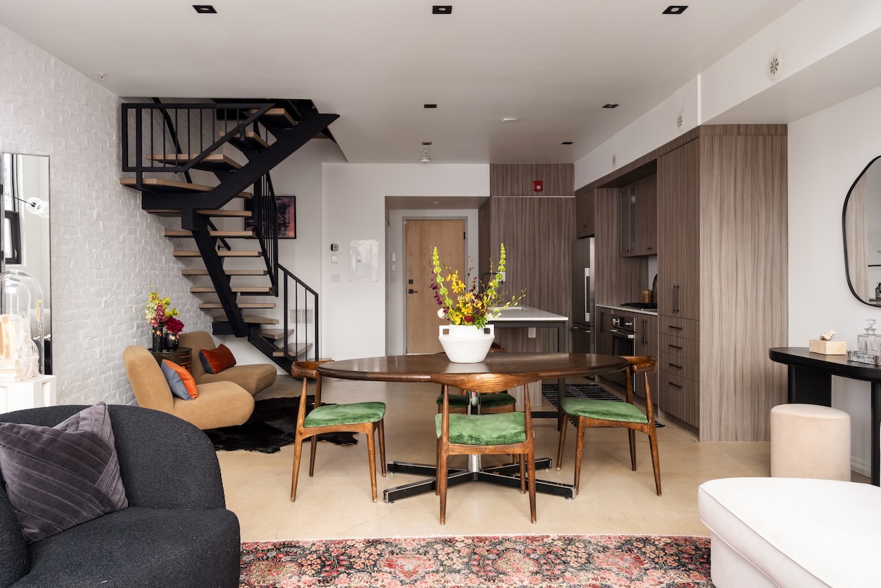 - Modern flare on the traditional hard loft aesthetic (factory inspired windows, polished concrete floors, open plan, lofty ceilings …)