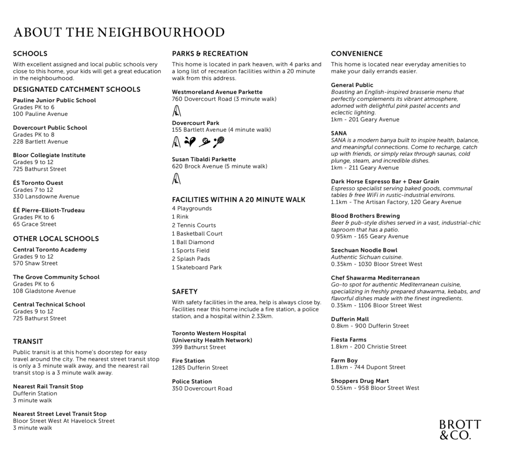 Dear real estate kittens: time to pounce on this purrrrfect 2 bedroom, 3 bath and 3 storey loft/townhouse/dream space in prime location just north of Bloor (the subway is 5 seconds away!). The Lanehouse at 50 Bartlett Ave is one of the coolest projects in the City combining lofty conversion vibes – (cobblestone lane, super high ceilings and nearly floor-to-ceiling factory inspired windows) with sleek high end finishes and lots of privacy. Primary bedroom walks out to a private rooftop terrace with amazing views. Tucked in a convenient pocket between Geary Ave, Dovercourt Village and Bloor St you have no shortage of amenities like the Dufferin mall and its many conveniences, parks galore (Dovercourt Park and Dufferin Grove each a few blocks away), and so many incredible bars/restaurants/cafes to choose from (General Public, Better Days Coffee & Donuts, Three Speed and more!). Me-ow. Come and get it. Soon.