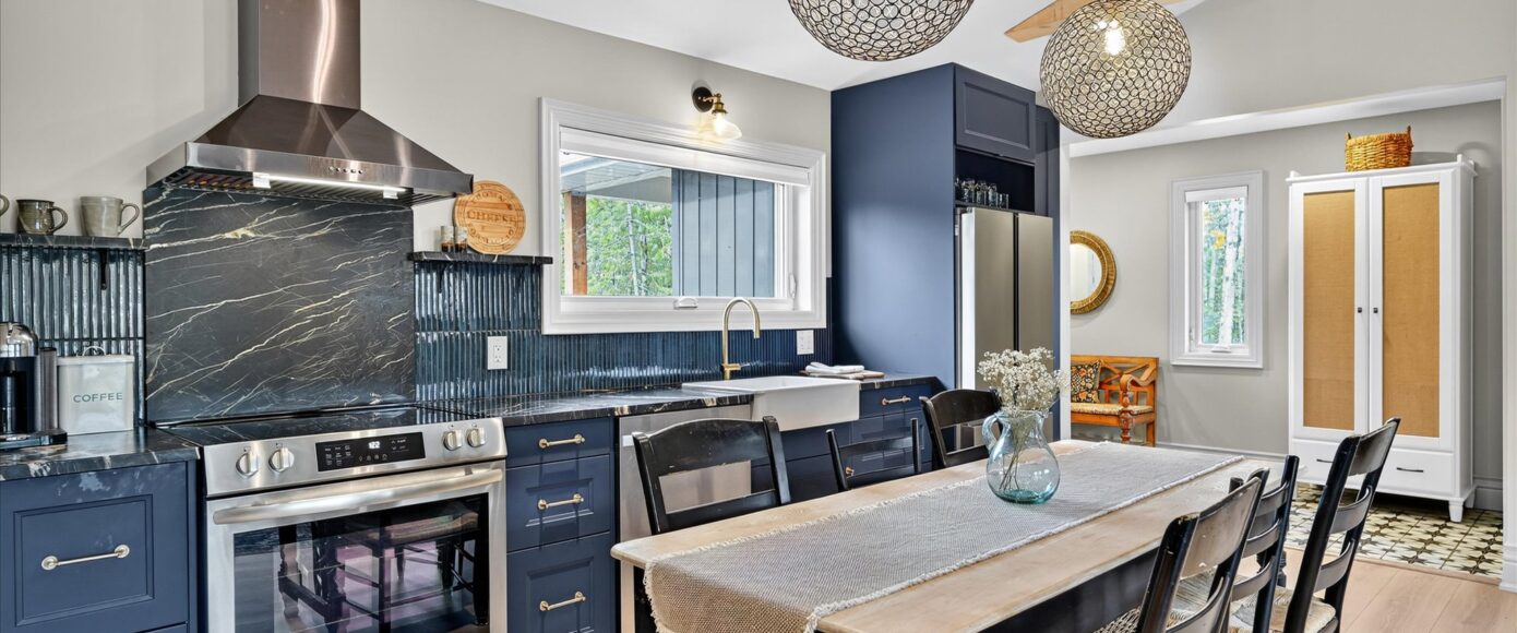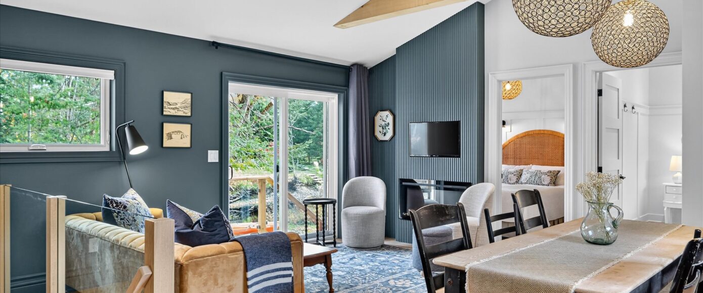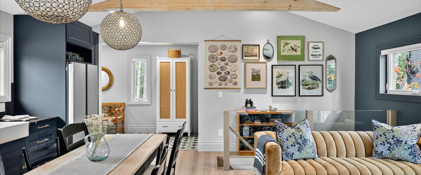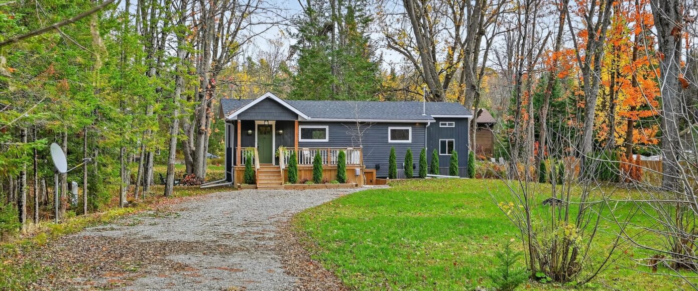 An exceptional complete package perfectly suited for the family cottage country escape. Kayak downstream to Little Bald Lake and the paddling trail. The attention to detail is beyond the norm we see today. The design and décor has flair and style only found in magazines. Weekends and holidays would be real easy in this space. Completely renovated with high-quality materials, fixtures, lighting and appliances. Exquisite furniture and accessories. Two bedrooms, a four-piece bath, open-concept kitchen, dining and living room with modern electric fireplace. High ceilings, large wood beams, tile and vinyl flooring. Main-floor laundry, front porch, back deck and easy access to the River, lower level with storage, utility room, games area, two-piece bath and a spacious tv room.